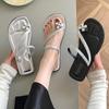 Sandálias de uma palavra de laço para mulheres 2024 Verão Novo estilo coreano de sola grossa Roupa externa Sapatos de praia rosa vermelha aberta para mulheres
