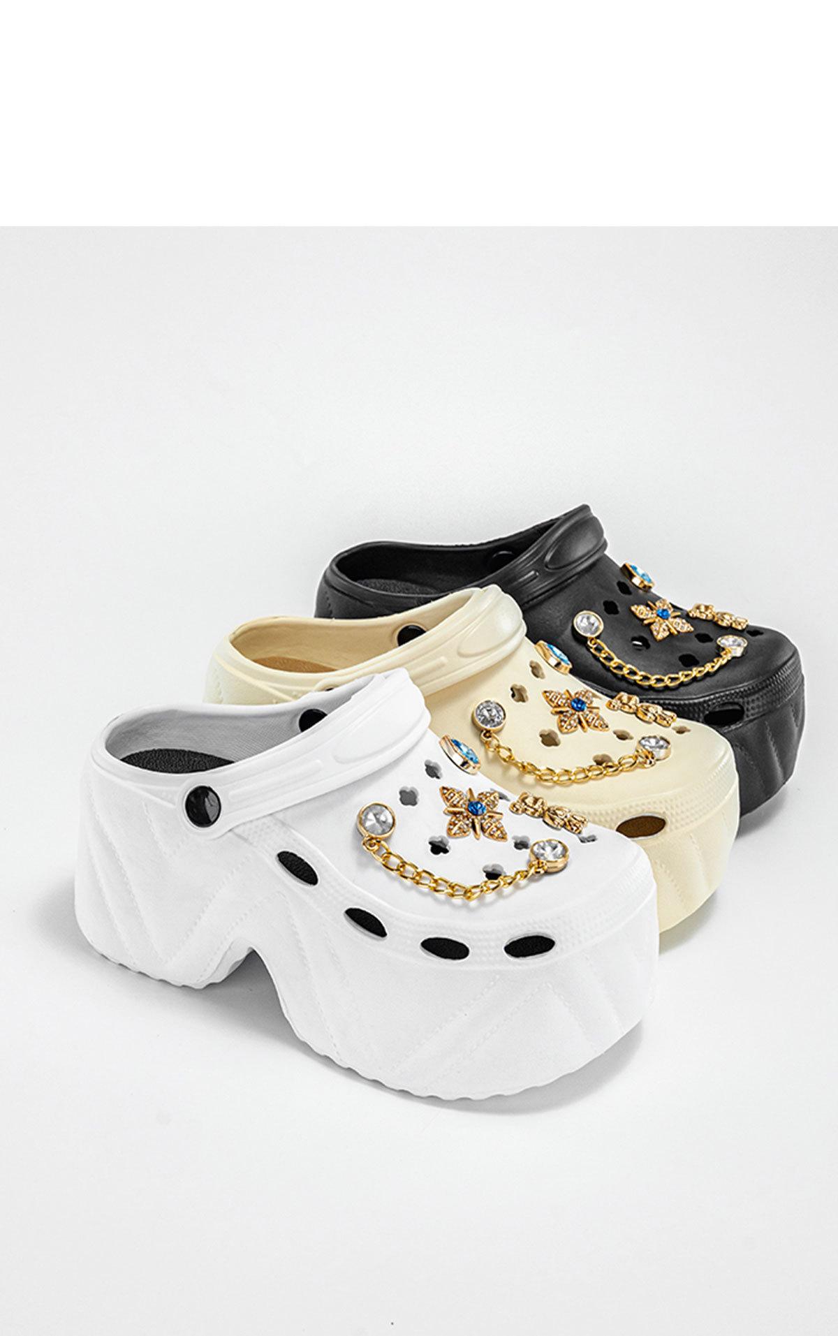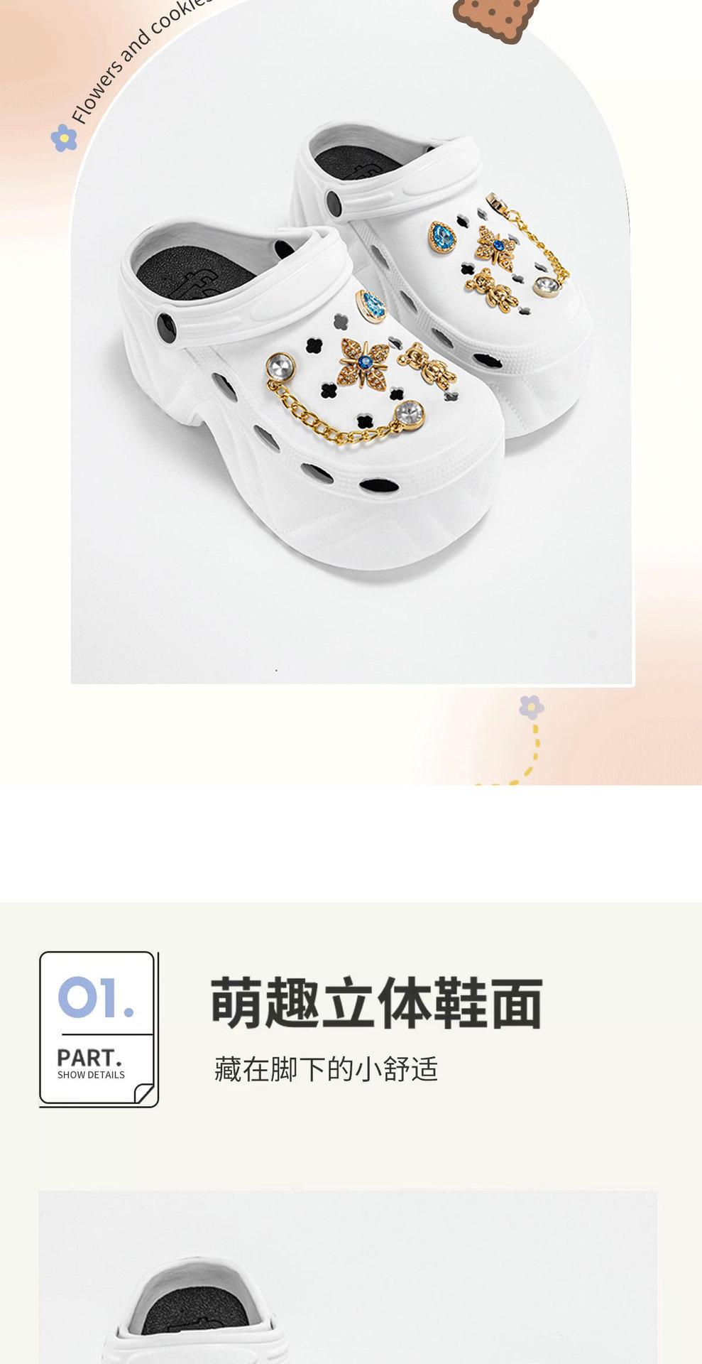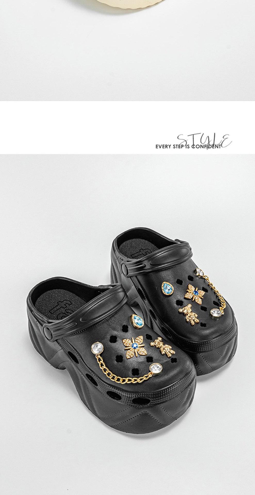 Novos sapatos de desenho animado safira dourada com buraco de coelho feminino, chinelos casuais, sola grossa, antiderrapantes, sandálias com bico alto