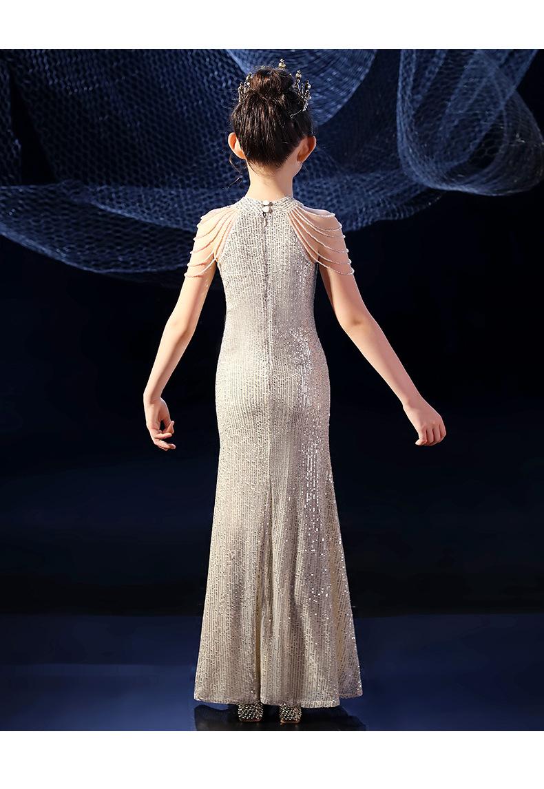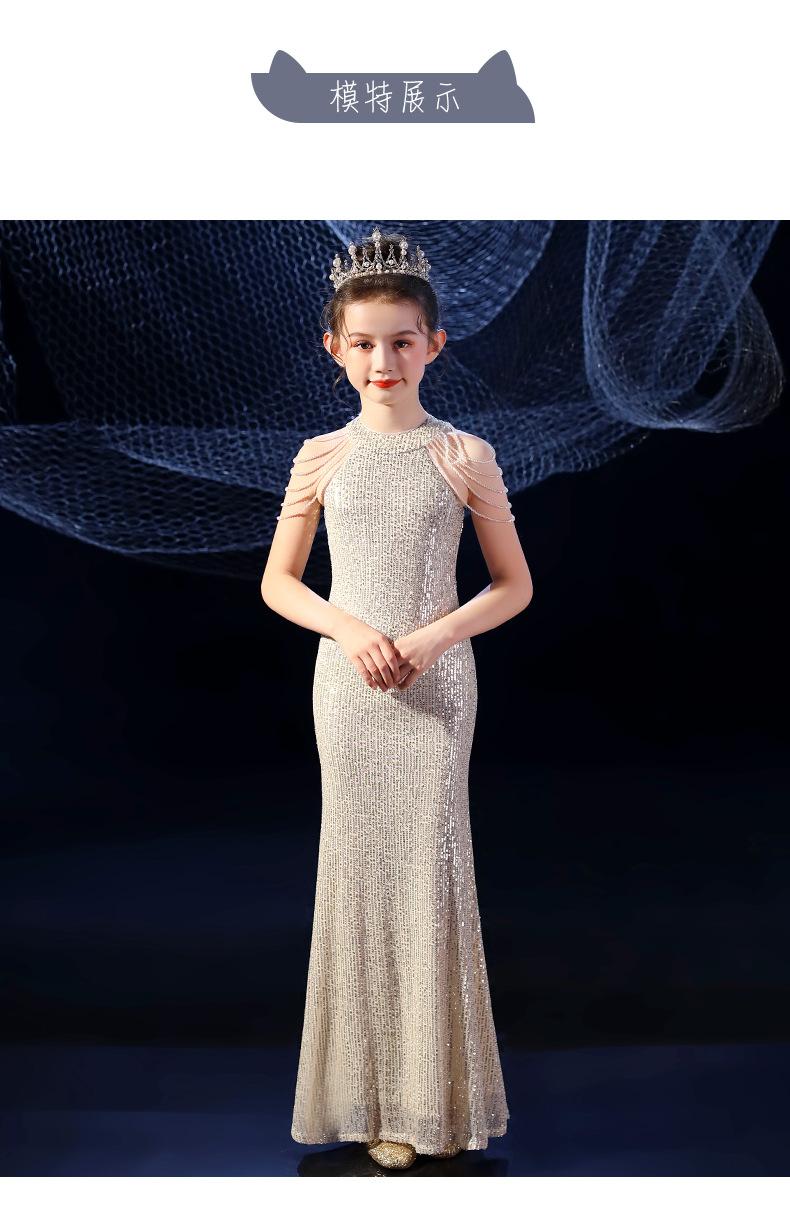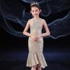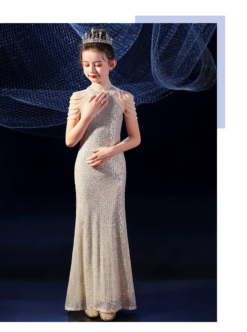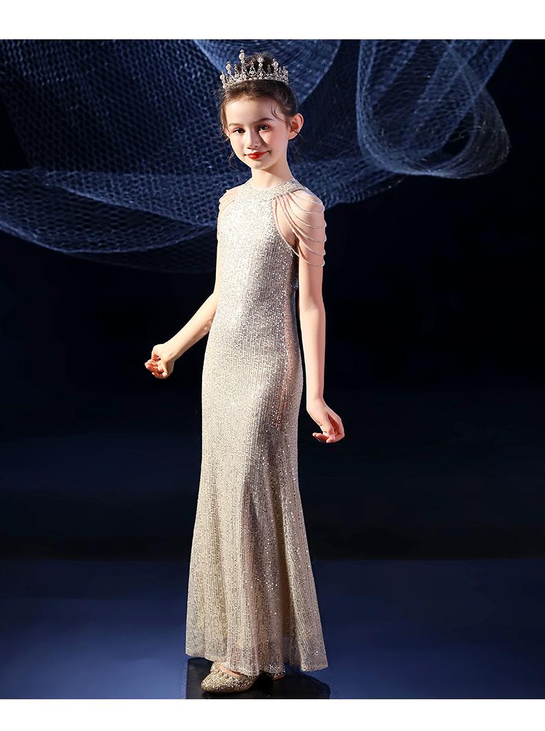 Vestido de Noite Fishtail para Meninas Vestido de Princesa Elegante Modelo Infantil Vestido para Apresentação de Piano Vestido para Menininha Inverno