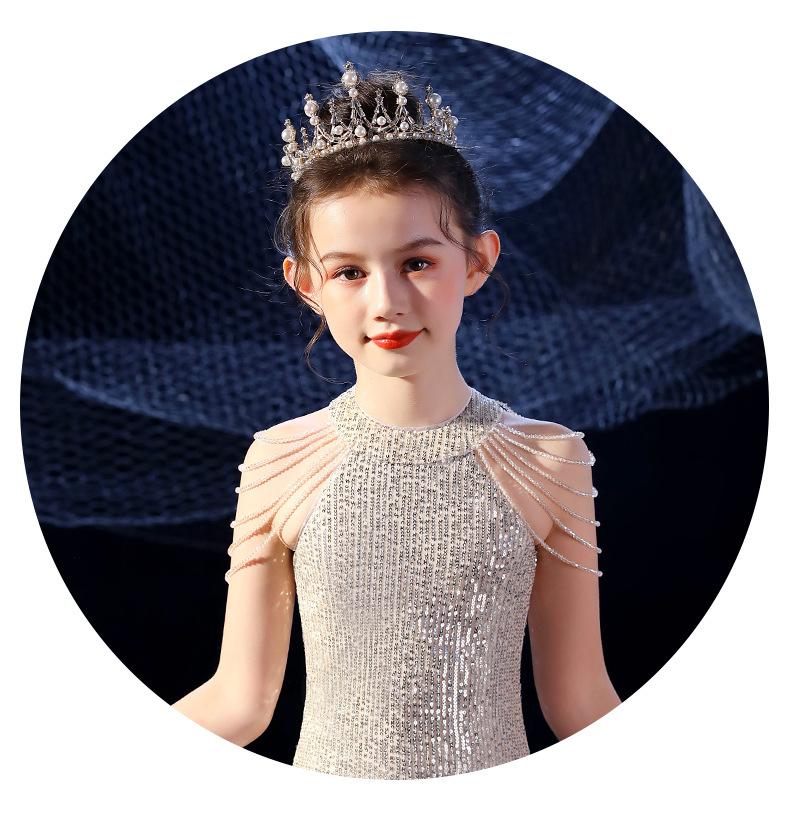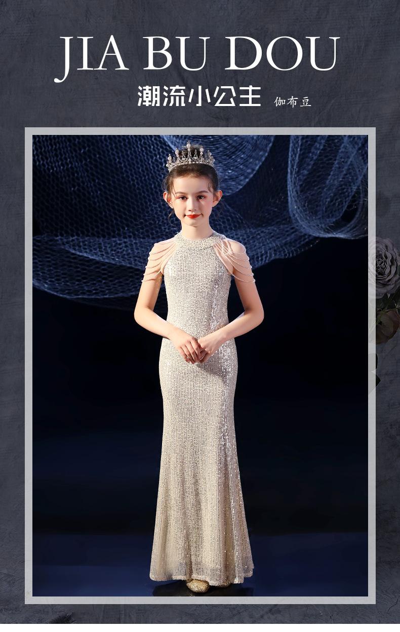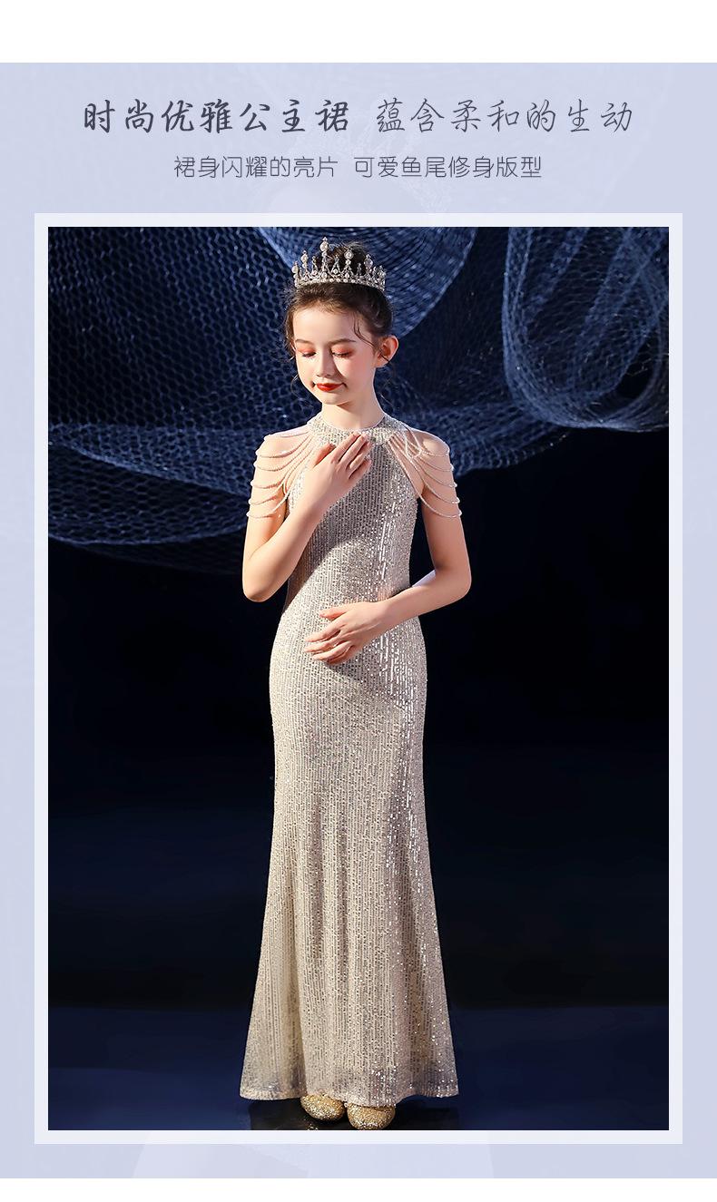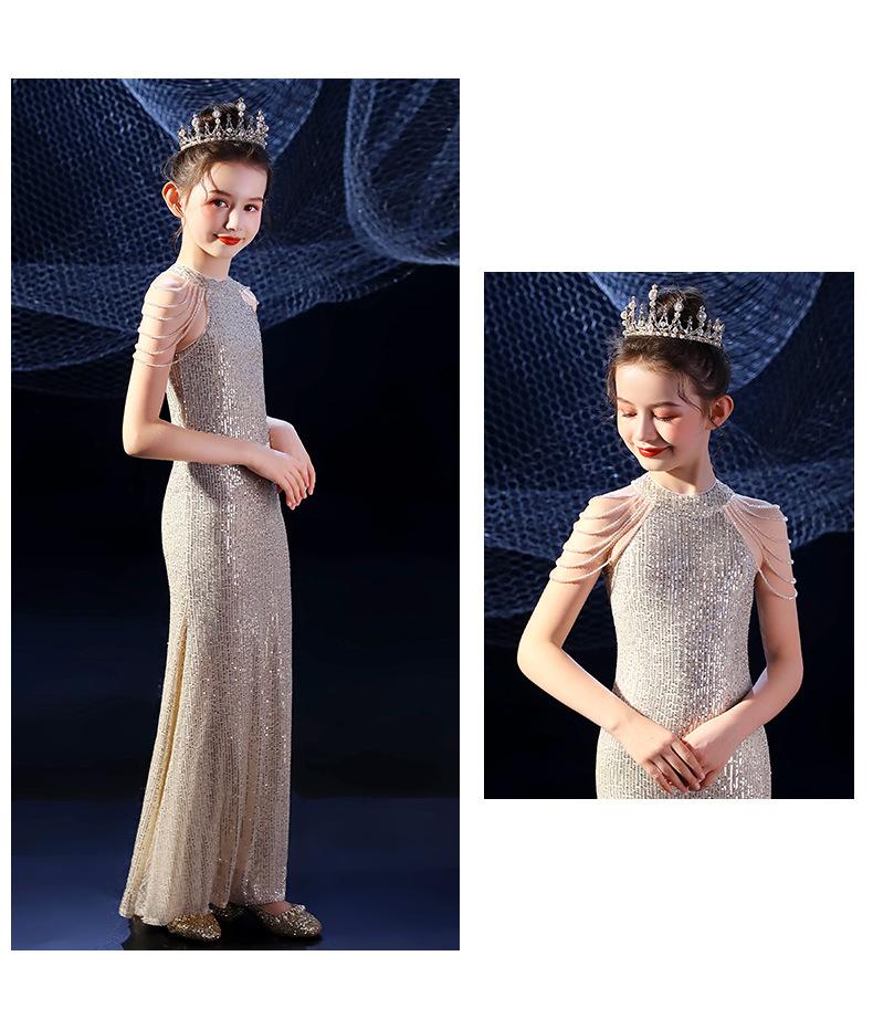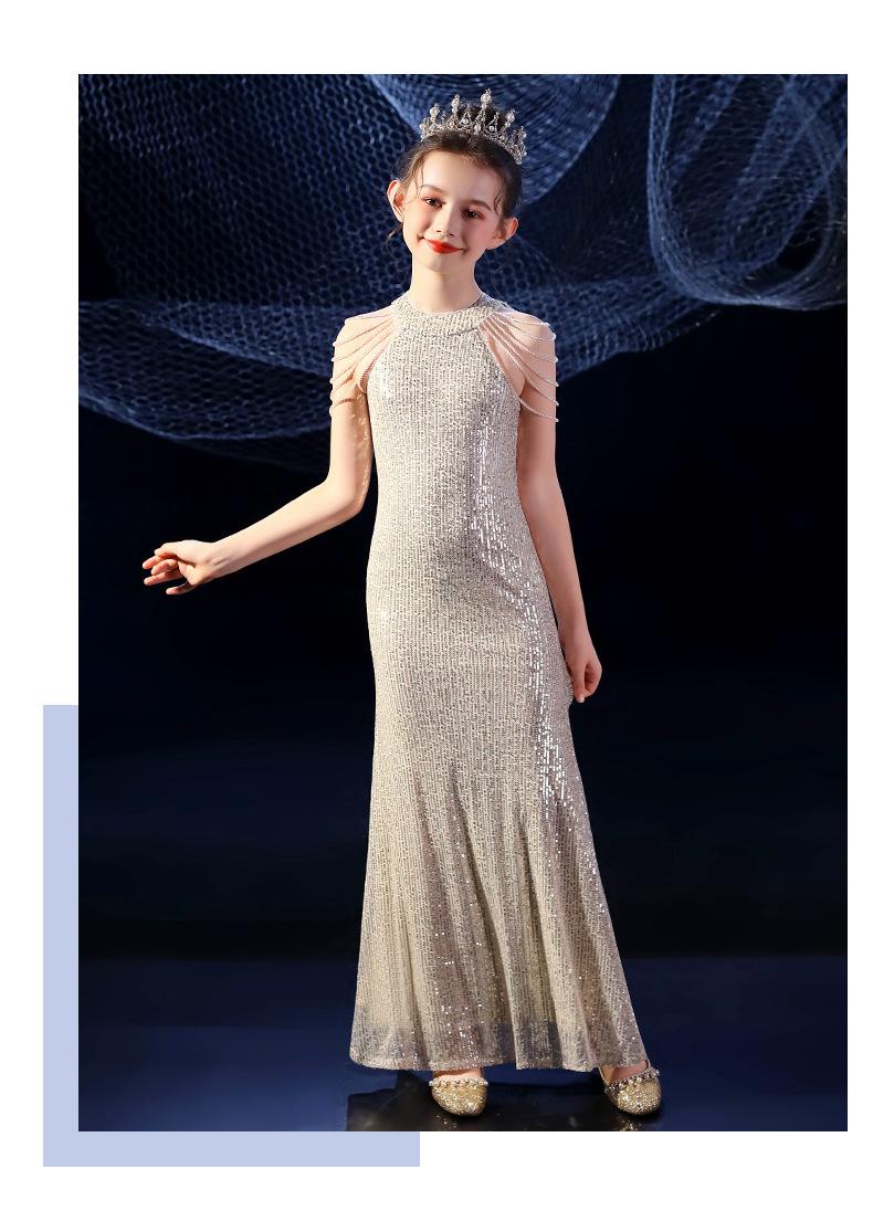 Vestido de Noite Fishtail para Meninas Vestido de Princesa Elegante Modelo Infantil Vestido para Apresentação de Piano Vestido para Menininha Inverno
