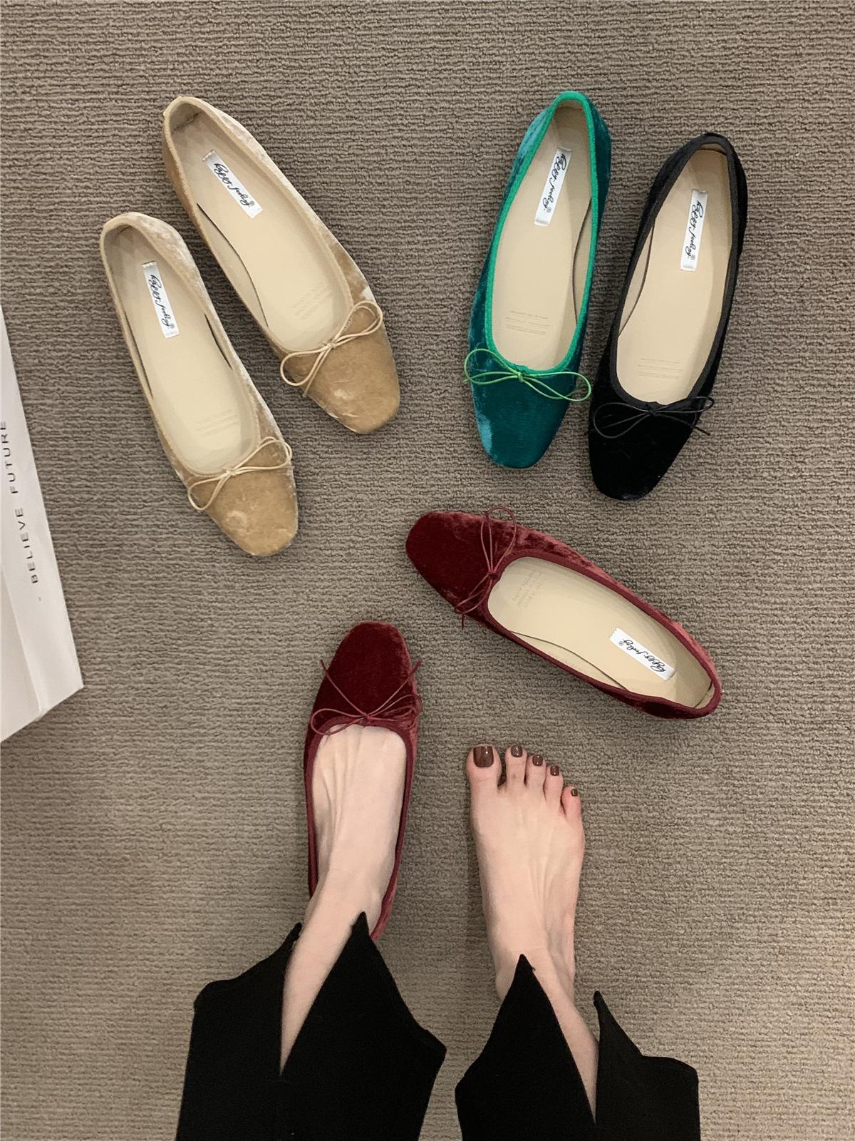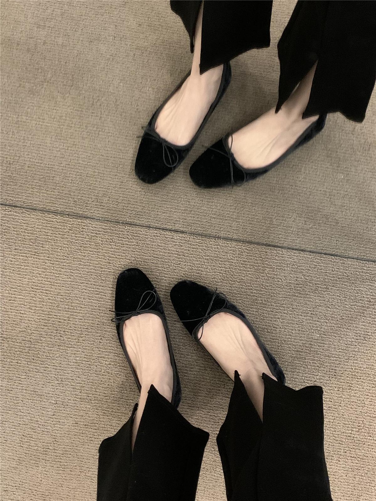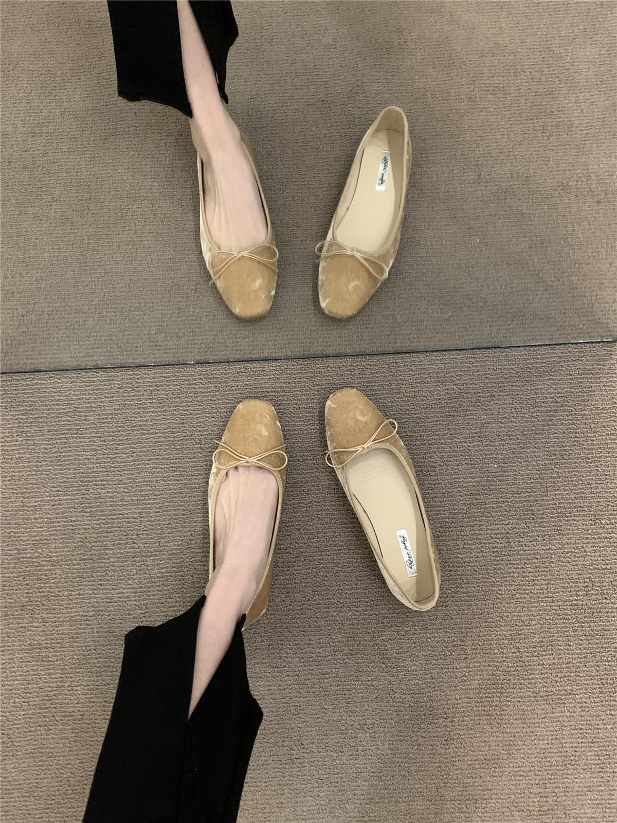 Sapatos de laço plano francês feminino 2024 Nova primavera Vintage Milk Shoes Ballet Shoes Slip-on Pedal Shoes