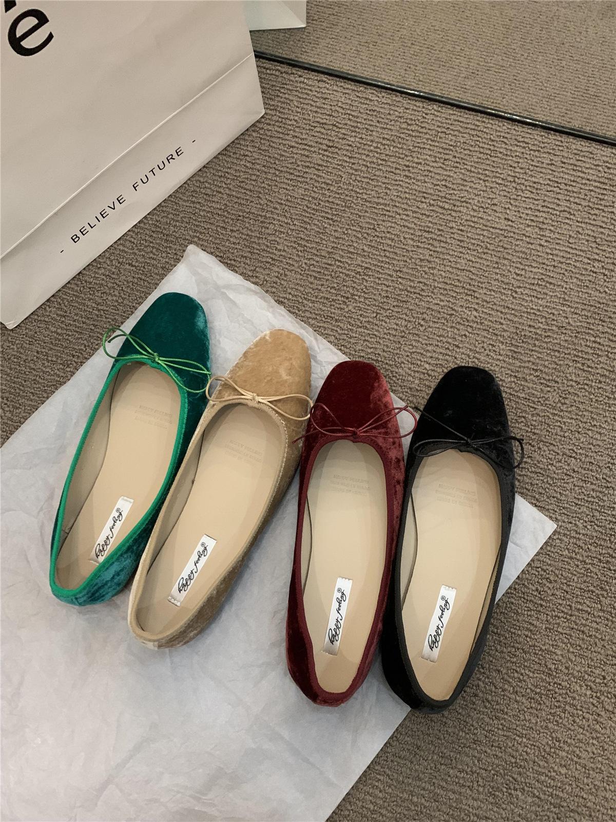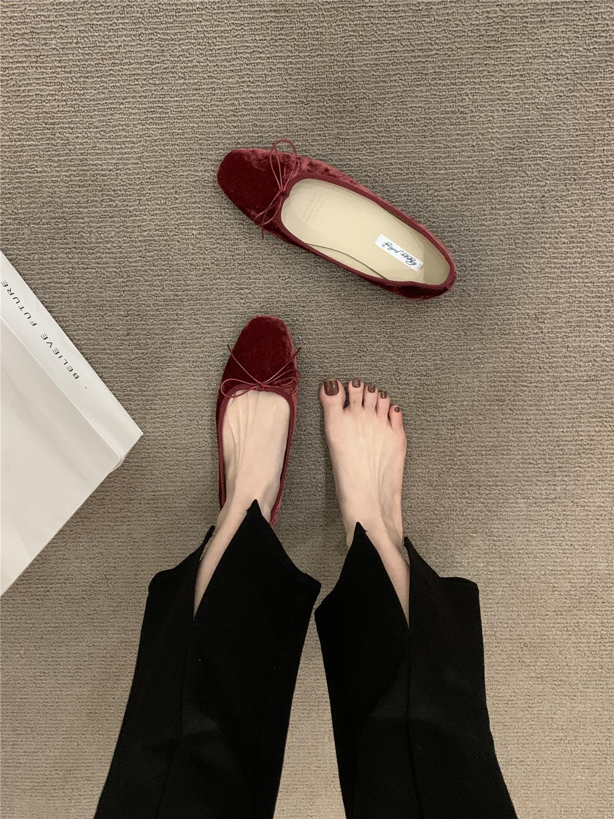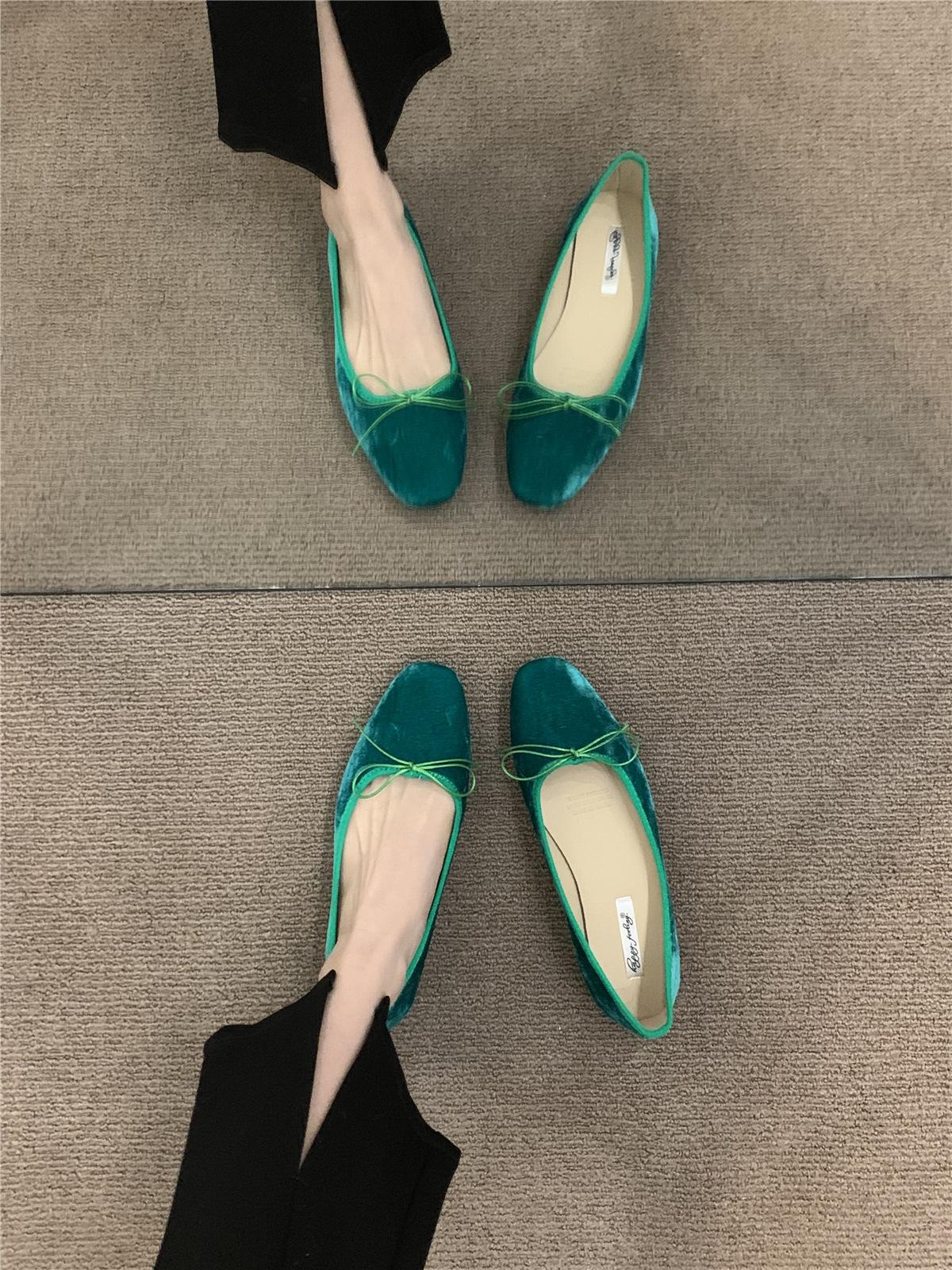 Sapatos de laço plano francês feminino 2024 Nova primavera Vintage Milk Shoes Ballet Shoes Slip-on Pedal Shoes