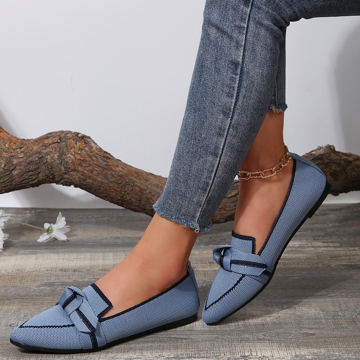 Comércio exterior Novo Leve Respirável Perna Sapatos Baixos Feminino Cross-border Shallow Bow Pointed Leg plus size Sapatos de Barco