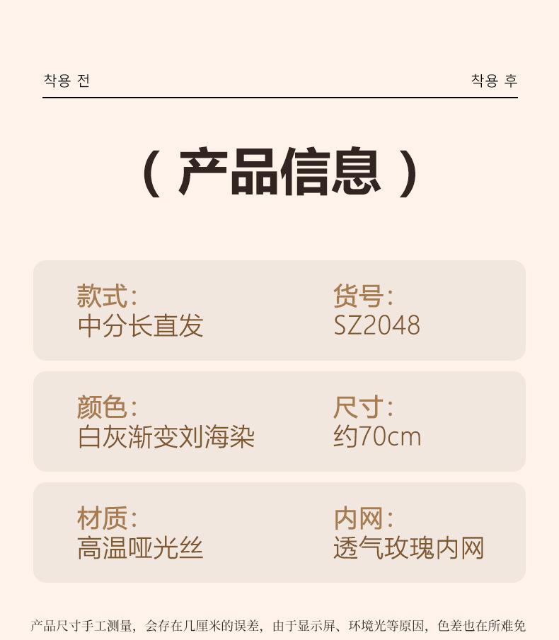 2. As perucas são muito fáceis de usar, e o efeito de usá-las em pessoas diferentes será diferente. Portanto, não podemos garantir que elas terão 100% o mesmo efeito que a modelo. Depois que a modelo usa a peruca, ela terá um efeito fofo quando for empurrada para o lado com as mãos e então agarrada. A peruca é muito eficaz. Para gerenciamento de espaço, às vezes uma peruca pode criar efeitos diferentes.