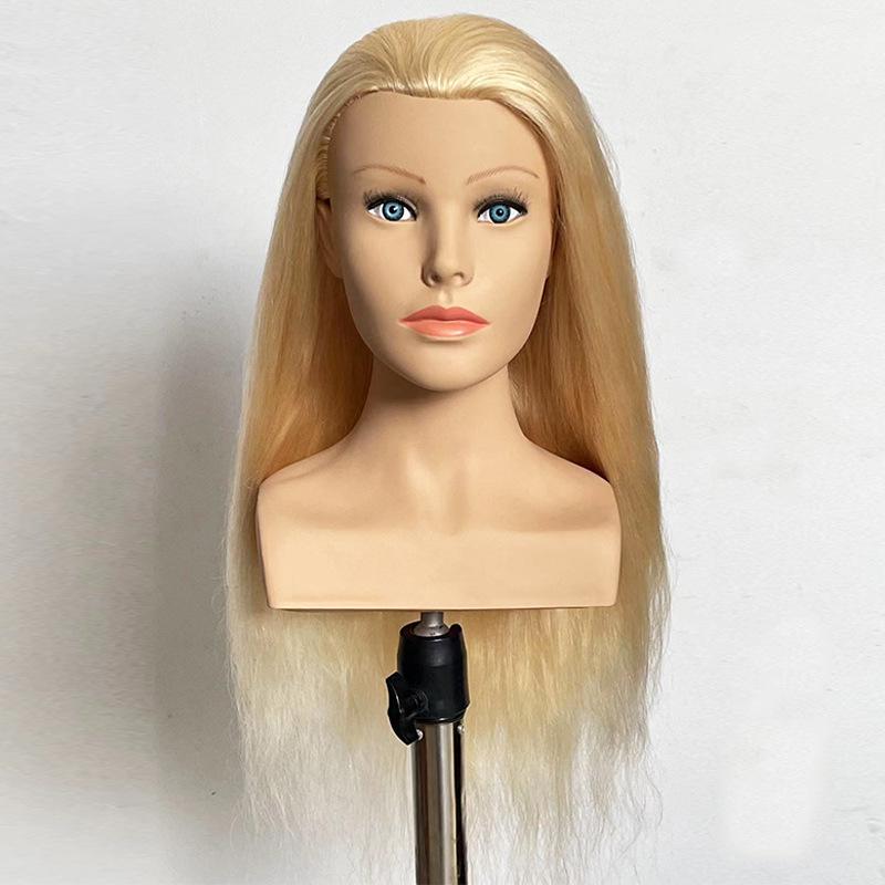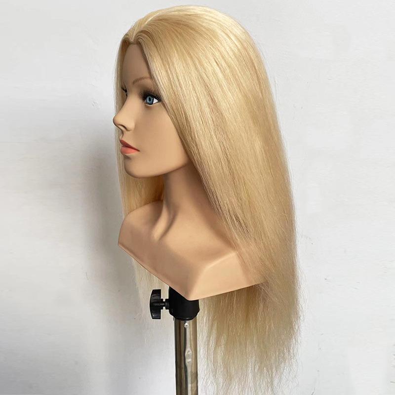 Cabeça de Manequim de Cabelo Real com Ombros para Aprendizes Praticarem Estilização de Cabelo, Tranças e Maquiagem; Pode ser permanente e tingido