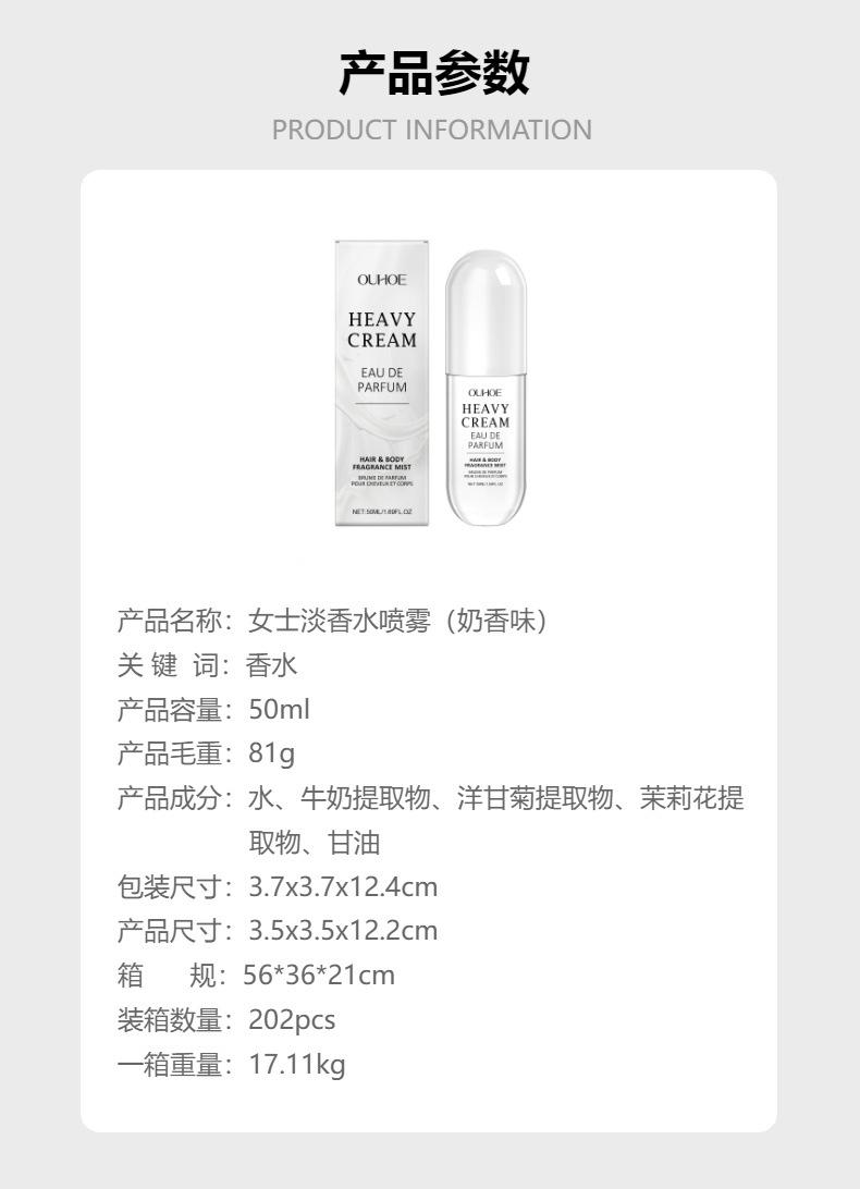 OUHOE Spray Eau De Toilette com aroma de leite para mulheres, elegante, fresco e perfumado, spray diário para o corpo e cabelo