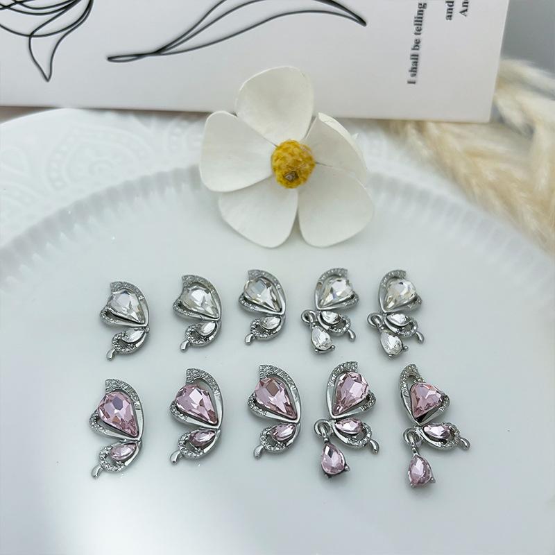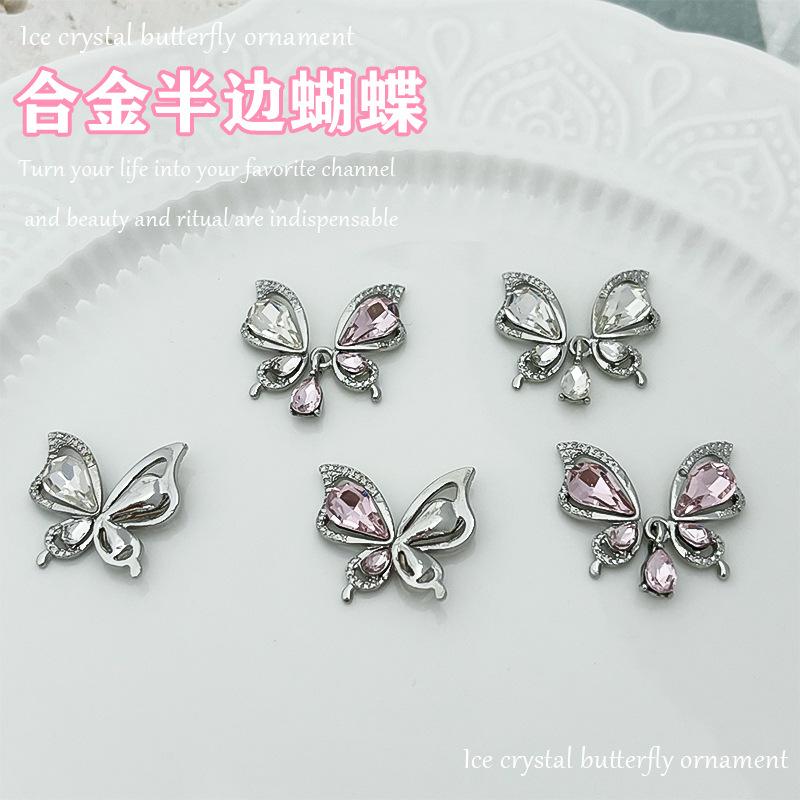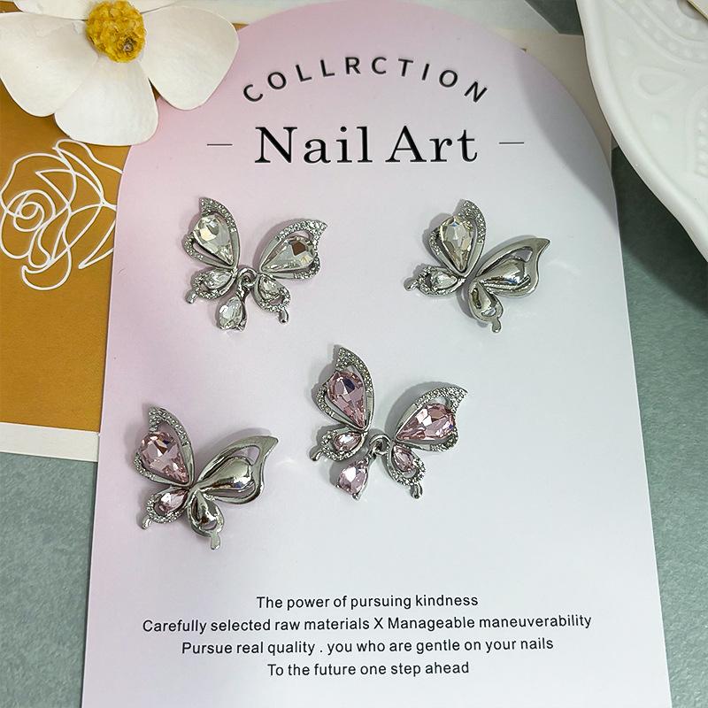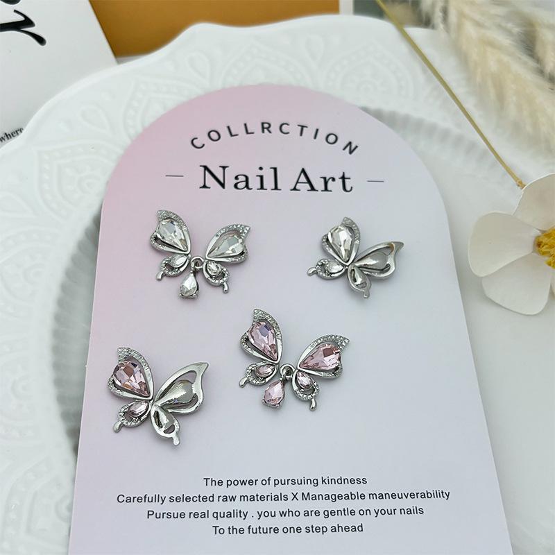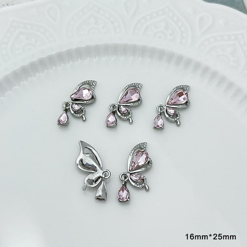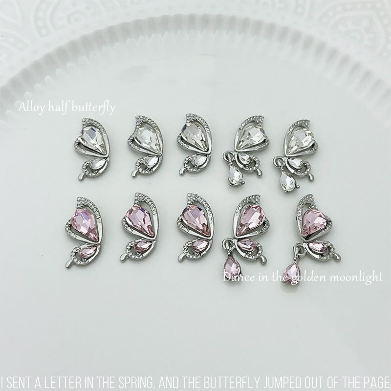Compre Unhas Postiças Populares de Celebridade da Internet Asas de Borboleta Manicure Diamante Estéreo Splicing Liga Rosa Pontiaguda Base Diamante Feito à Mão Usável Pacote Misto no atacado no Joom.pro
