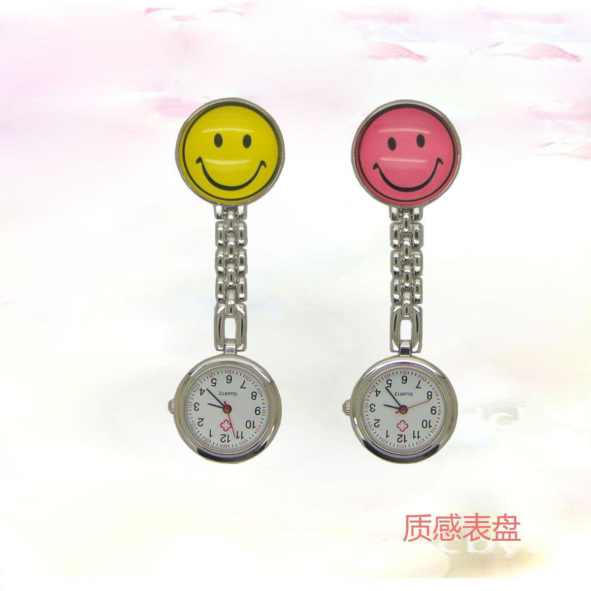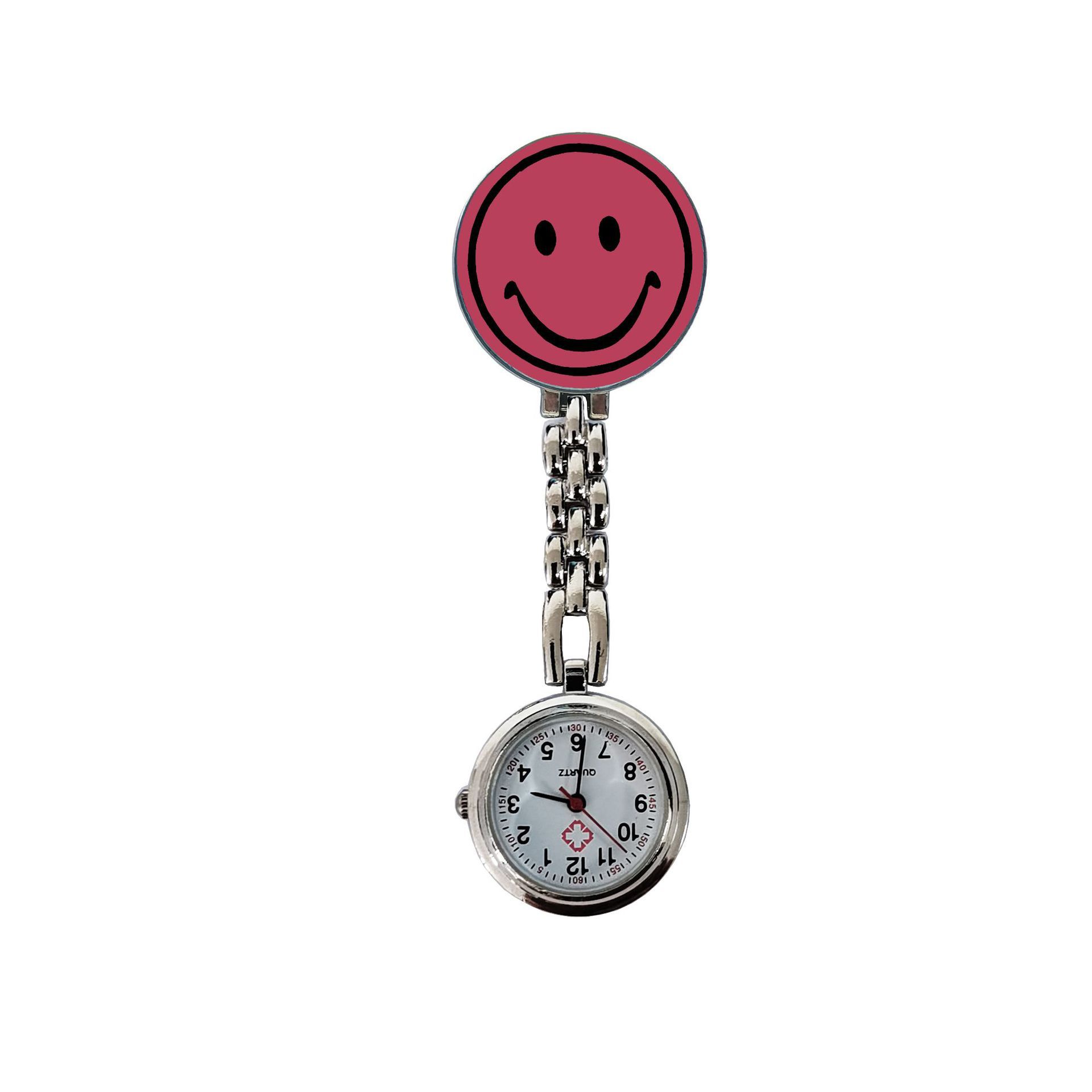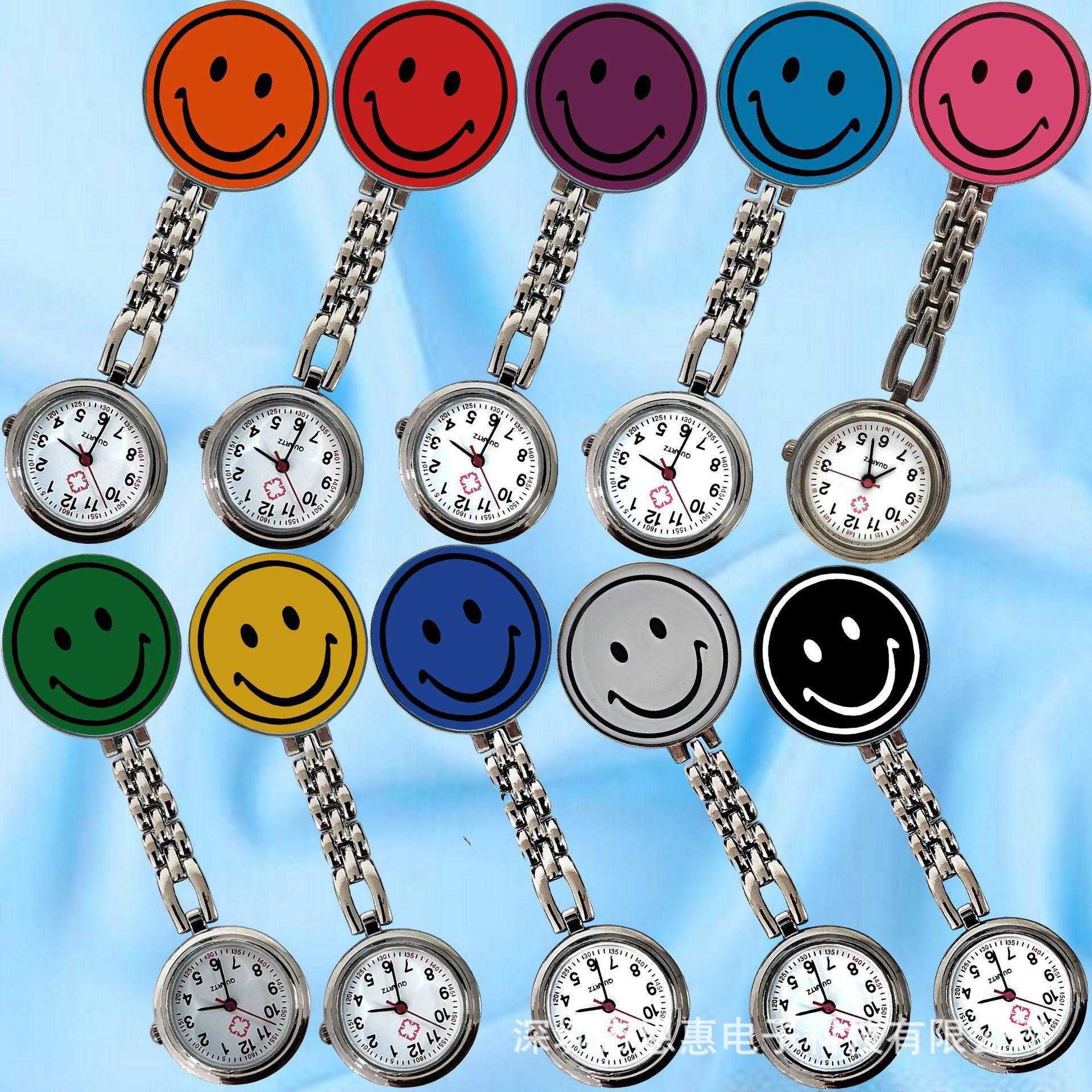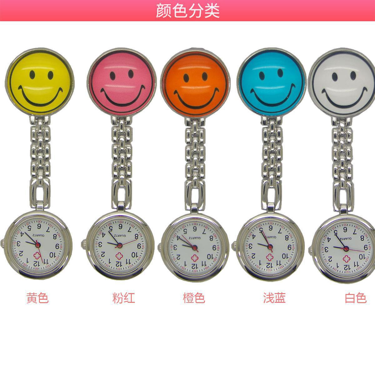 Relógio de Pendurar para Exame de Estudante Enfermeira Moda Bonito Menina Simples Redondo Multi-Cor Carinha Sorridente Clipe Criativo Relógio de Peito Relógio de Bolso