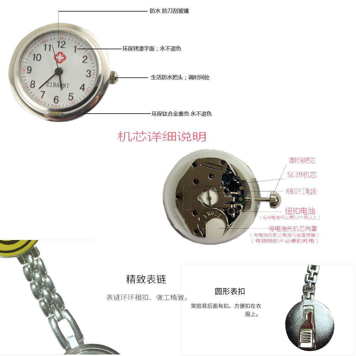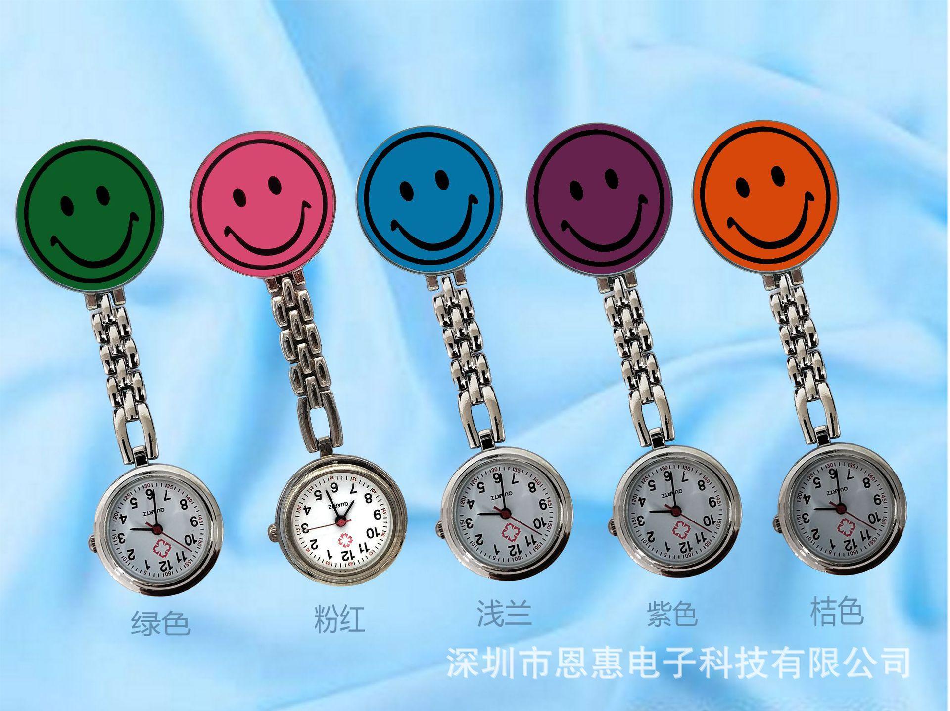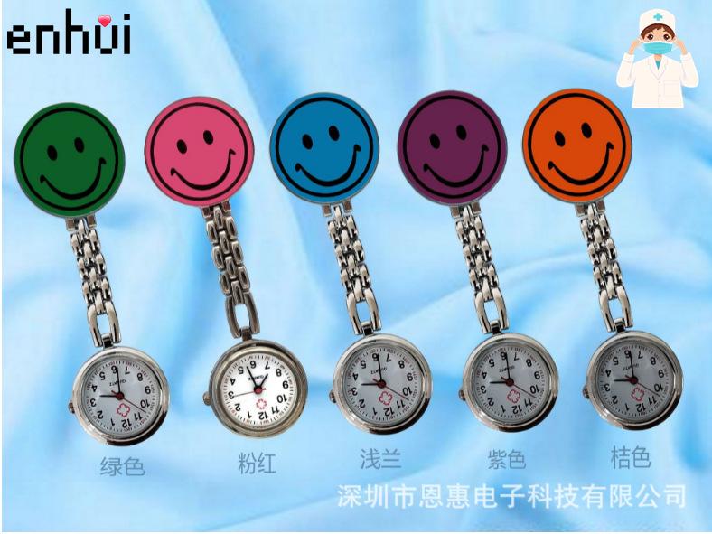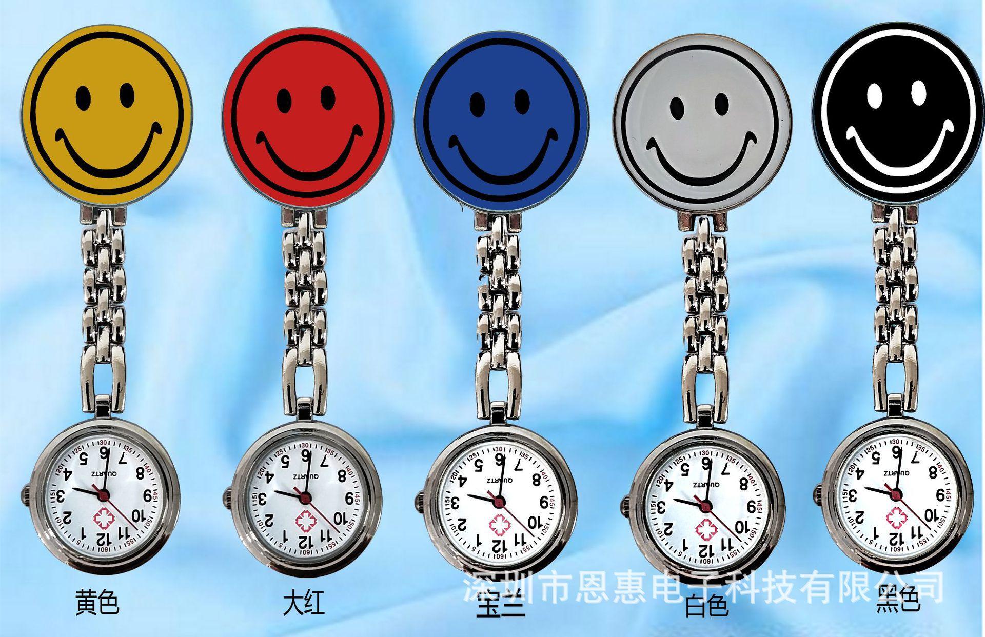 Relógio de Pendurar para Exame de Estudante Enfermeira Moda Bonito Menina Simples Redondo Multi-Cor Carinha Sorridente Clipe Criativo Relógio de Peito Relógio de Bolso
