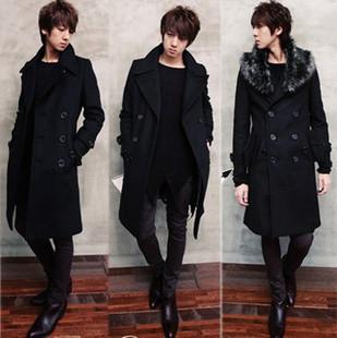Compre Casaco de lã trespassado masculino de outono e inverno Casaco estilo coreano Trenchcoat Slim-fit masculino Casaco de cor sólida de comprimento médio no atacado no Joom.pro