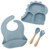 Army Green six-piece set (590g) bib small suction cup bowl silicone fork spoon