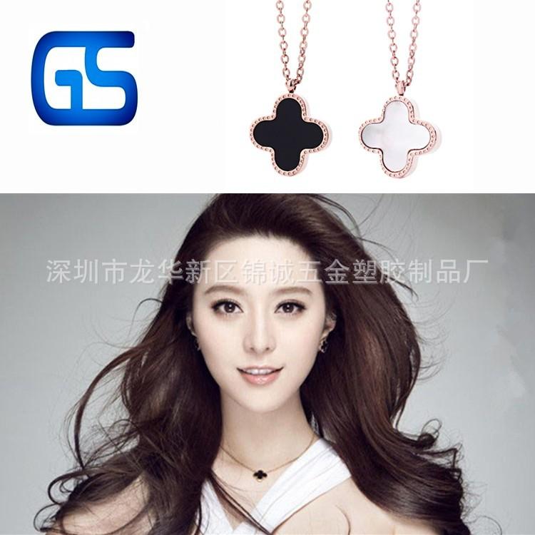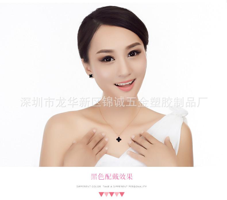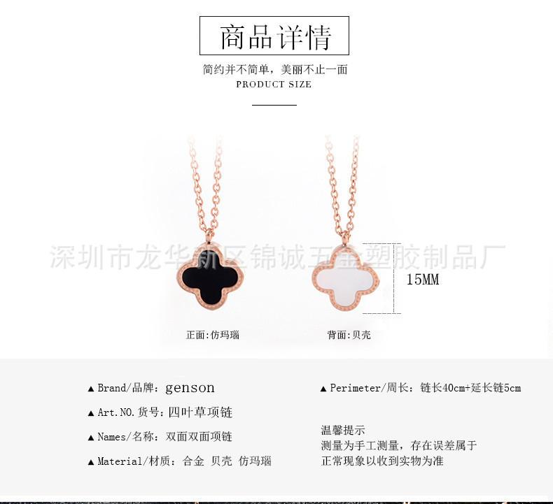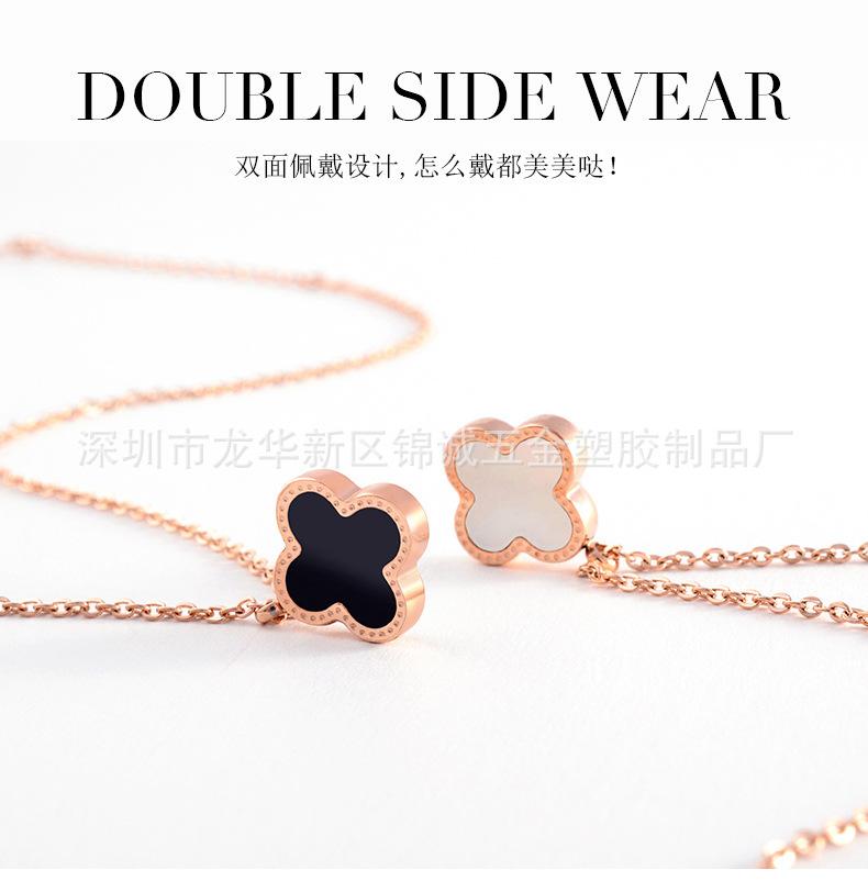 Versão coreana do pingente trevo de quatro folhas em aço titânio banhado a vácuo em ouro rosa 18K colar trevo da sorte antialérgico