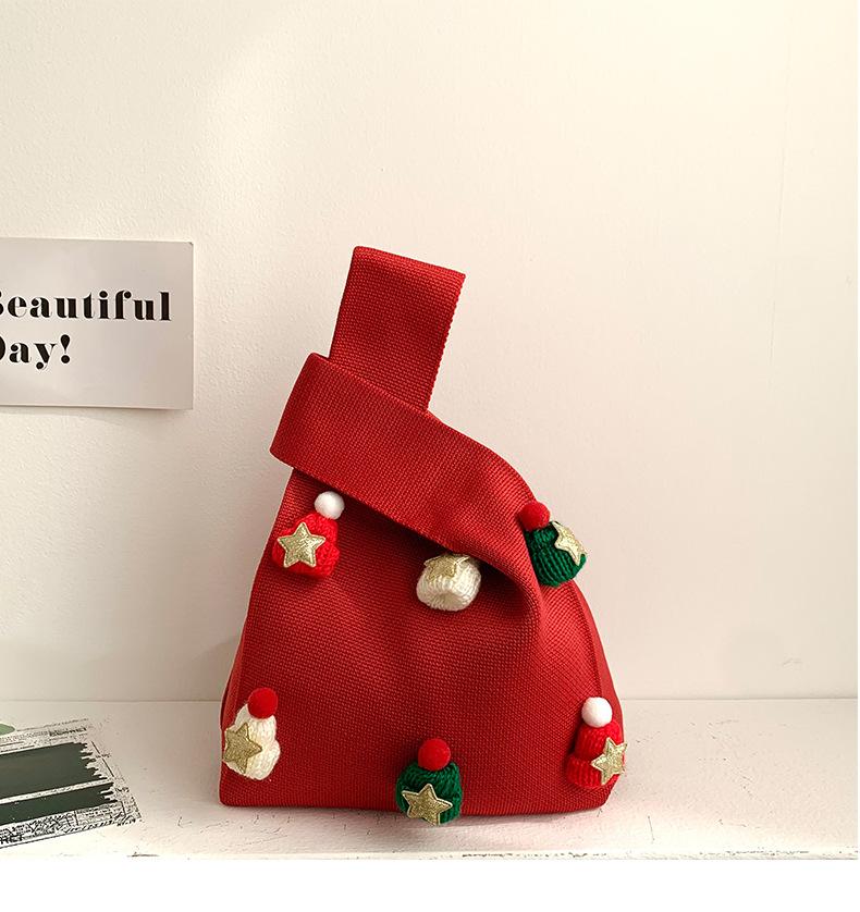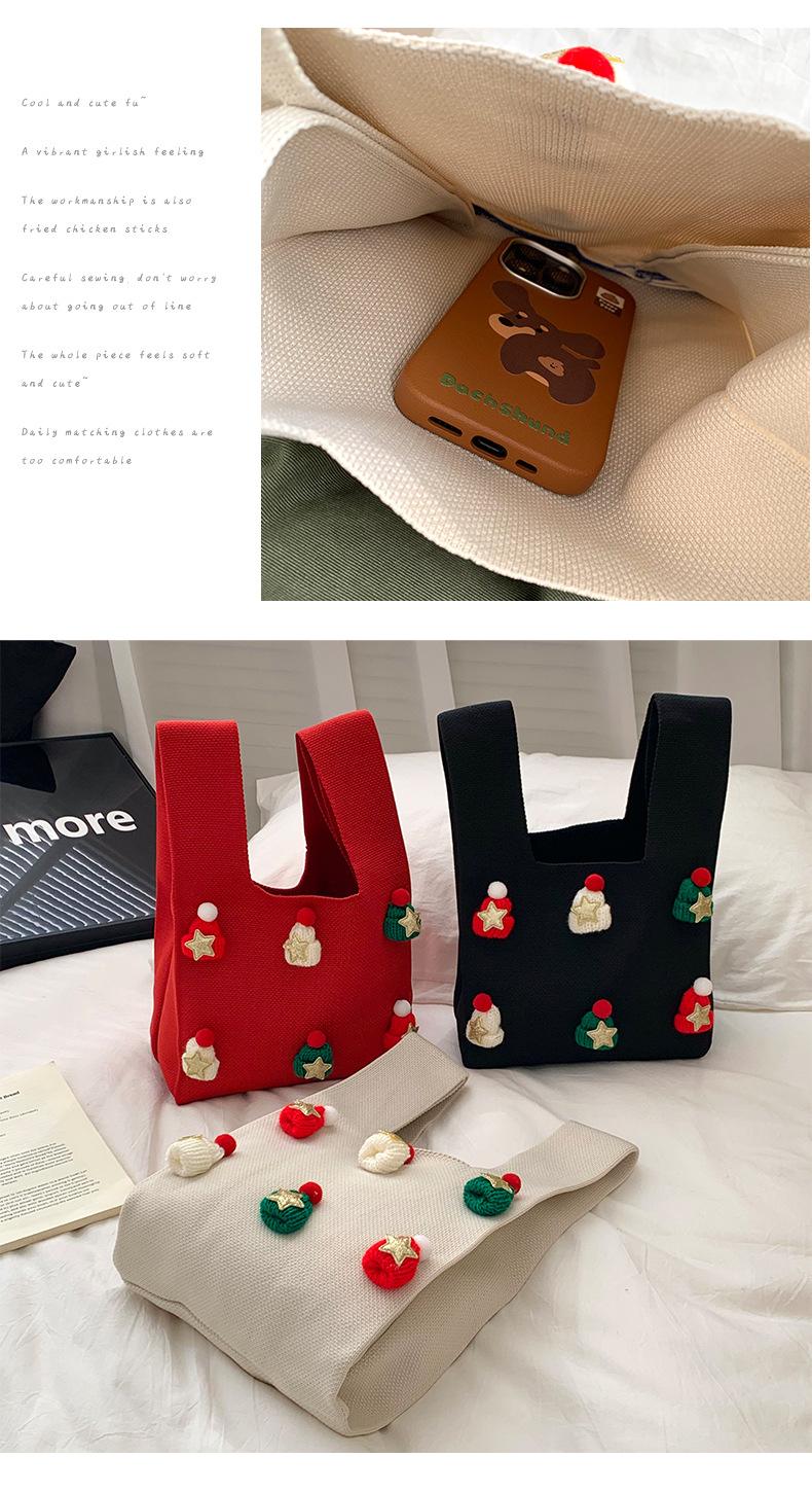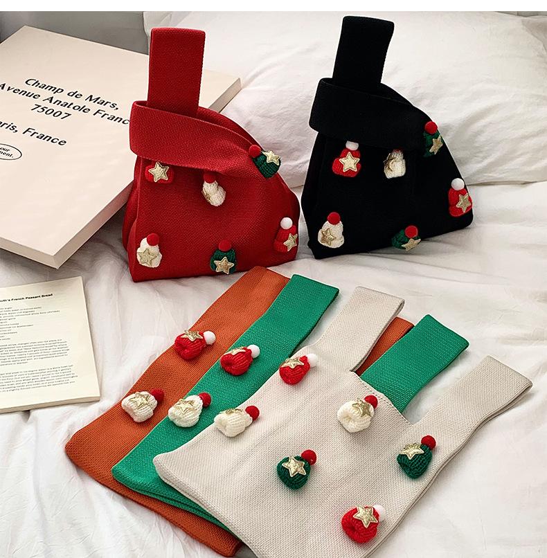 Bolsa Transversal Bolsa Pequena Feminina Versátil 2025 Novo Estilo Natal Chapéu Tridimensional Bolsa de Presente Bolsa Tricotada Bolsa de Ombro Bolsa de Mão