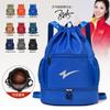 Mochila casual simples com cordão, cor sólida, grande capacidade, bolsa de viagem, fitness ao ar livre, bolsa de basquete com logotipo bordado