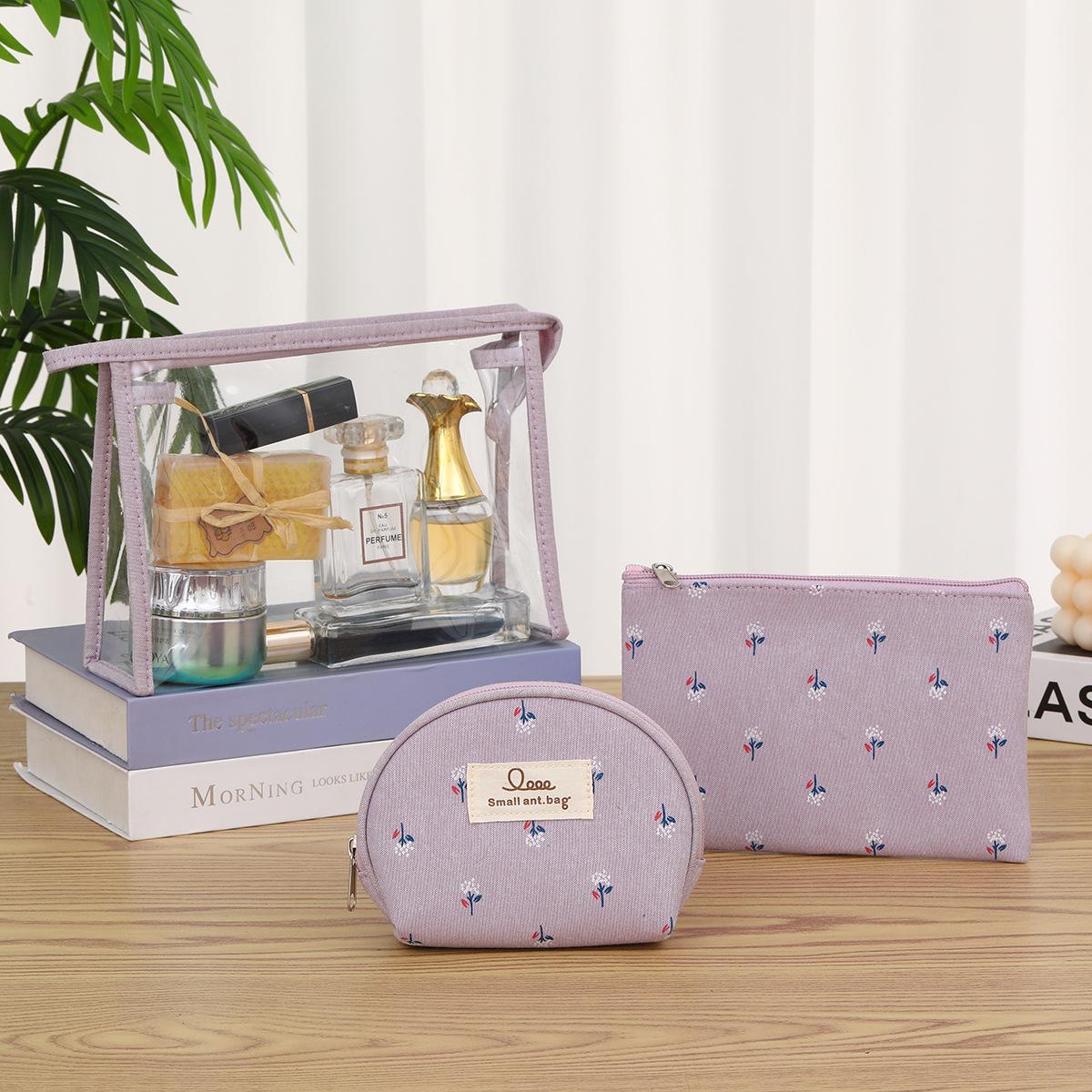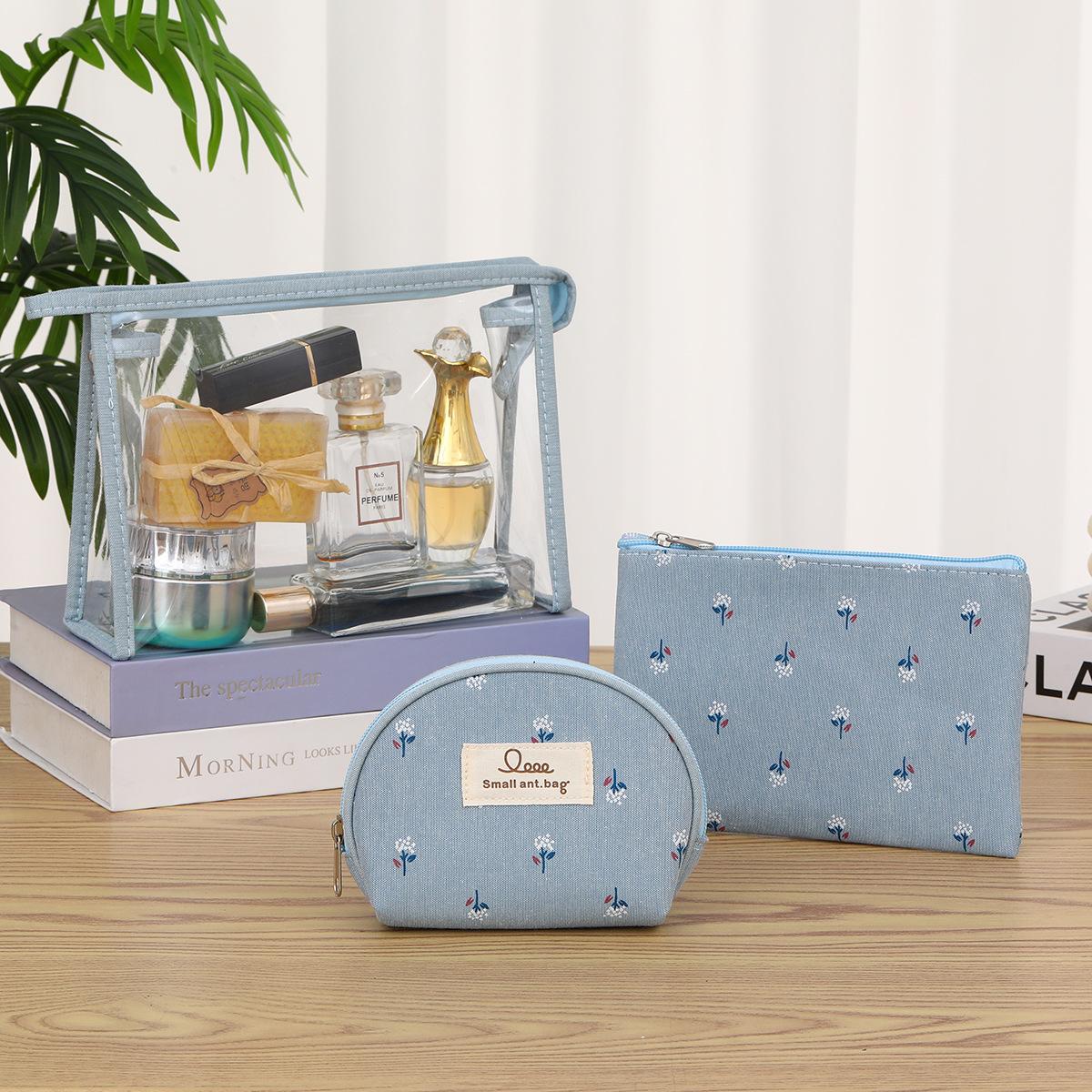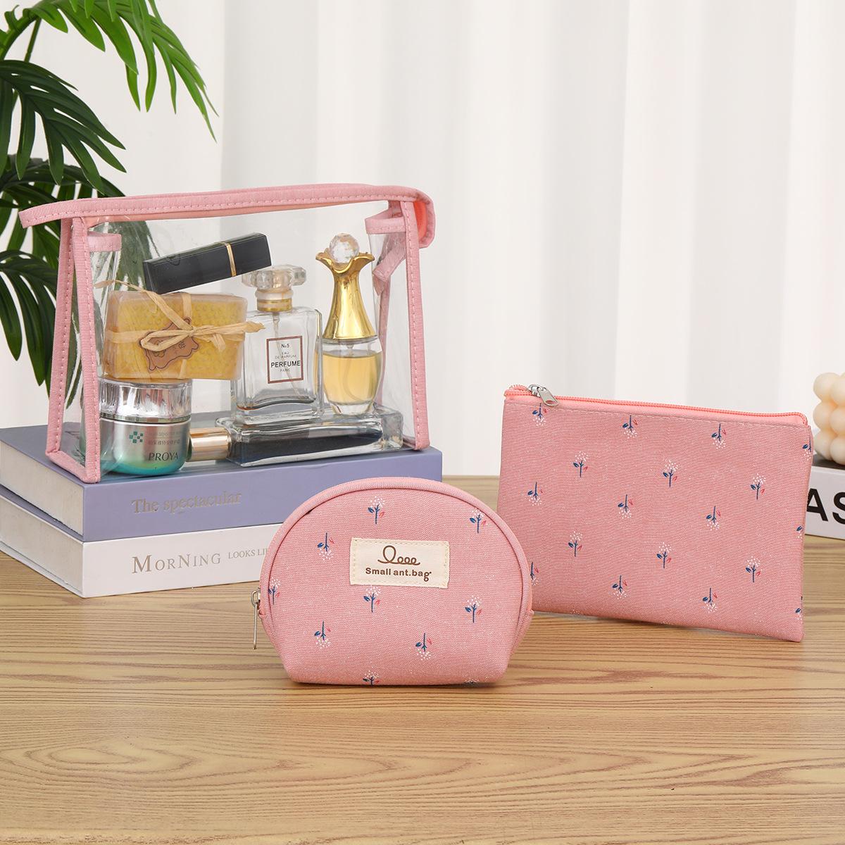 Compre Em estoque Bolsa Cosmética de PVC de Três Peças Bolsa de Lavagem de Viagem Portátil Suprimentos Cosméticos Bolsa de Armazenamento Transparente no atacado no Joom.pro