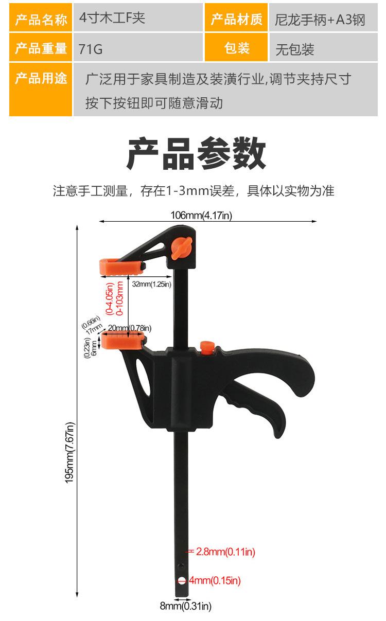 Clipe de madeira de 4 polegadas, compressão ajustável, forte, clipe f, clipe de ferramenta de madeira, clipe fixo, clipe de fixação de madeira