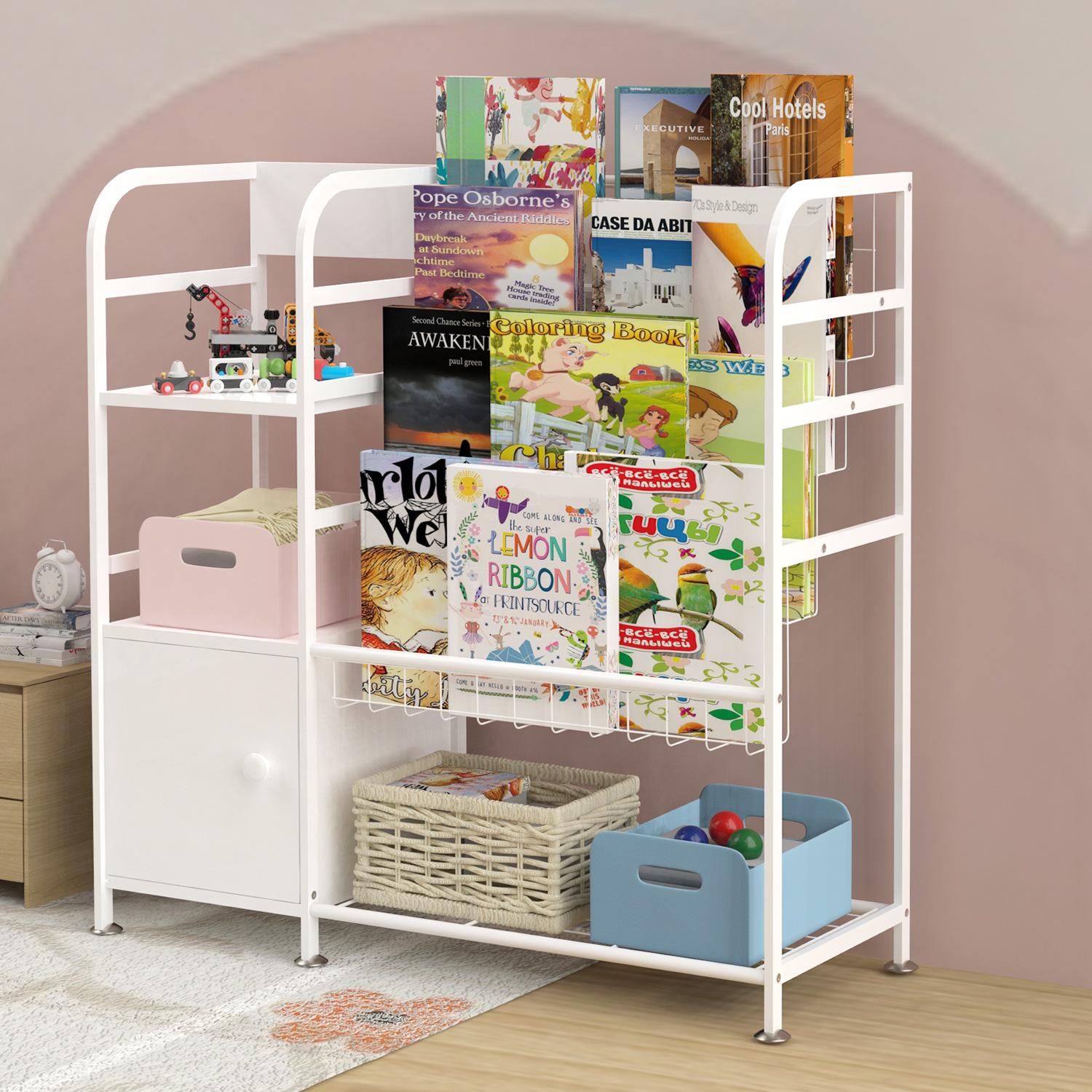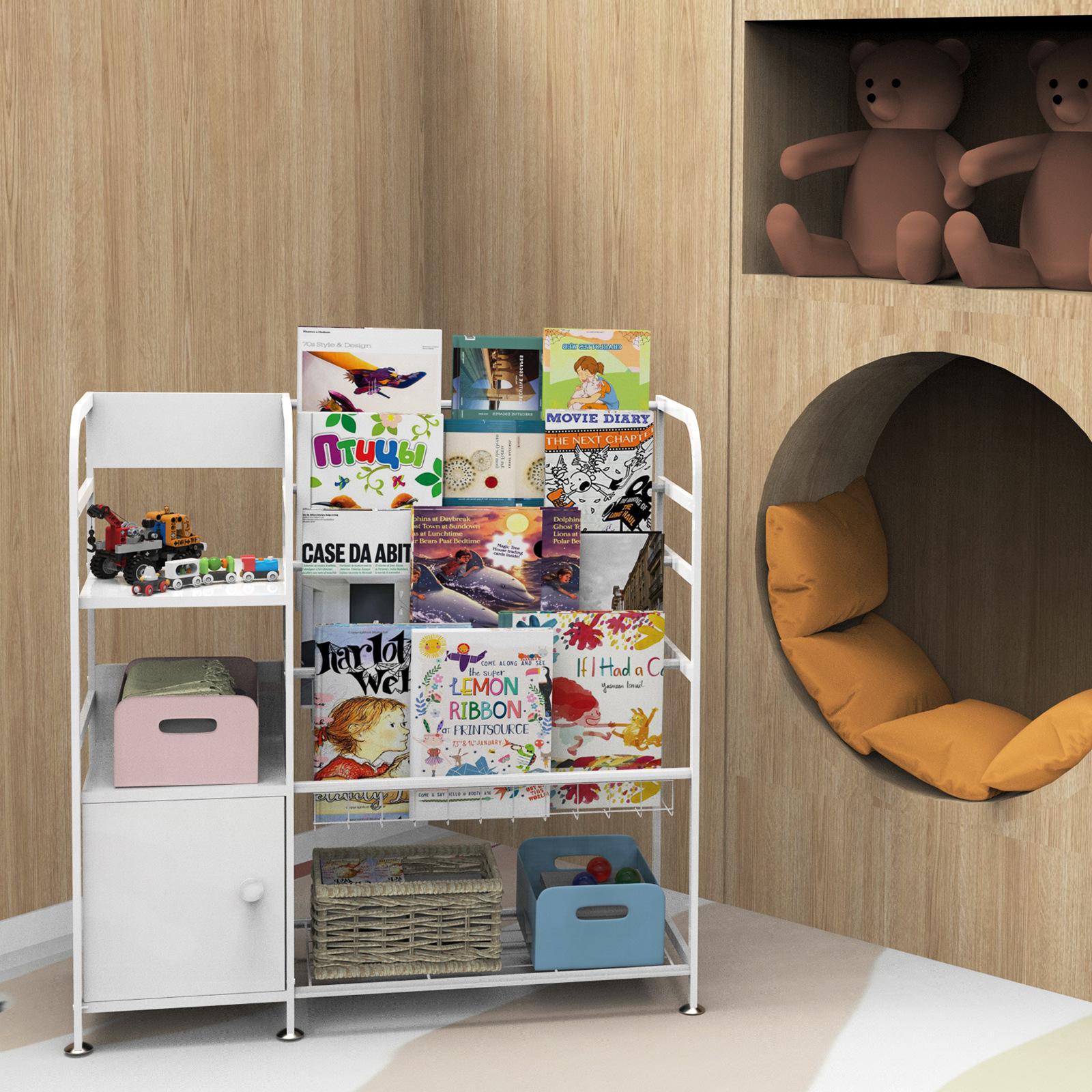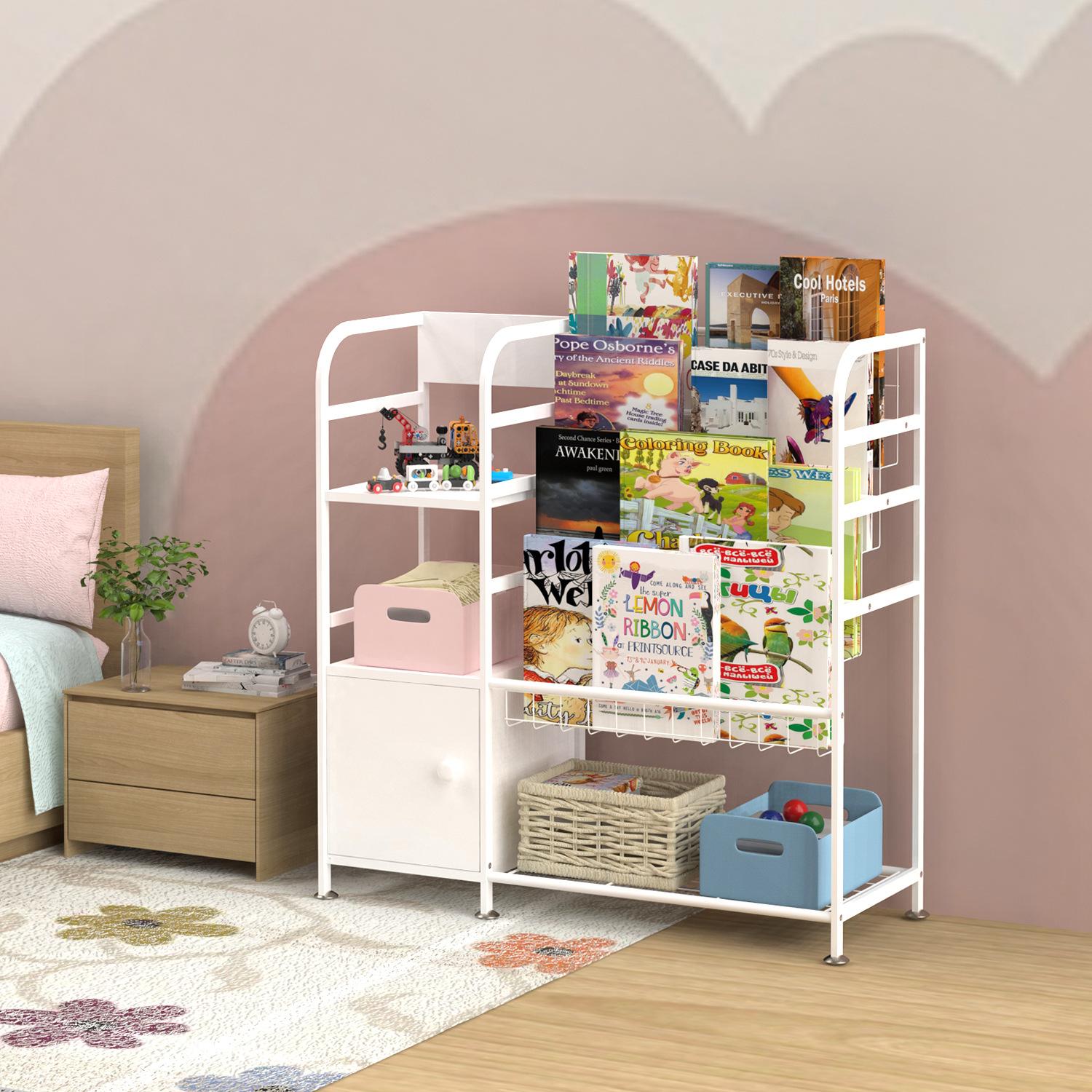 Estante para livros infantis Estante para livros ilustrados Armazenamento de brinquedos Estante para bebês Estante para artigos de papelaria de chão para uso doméstico