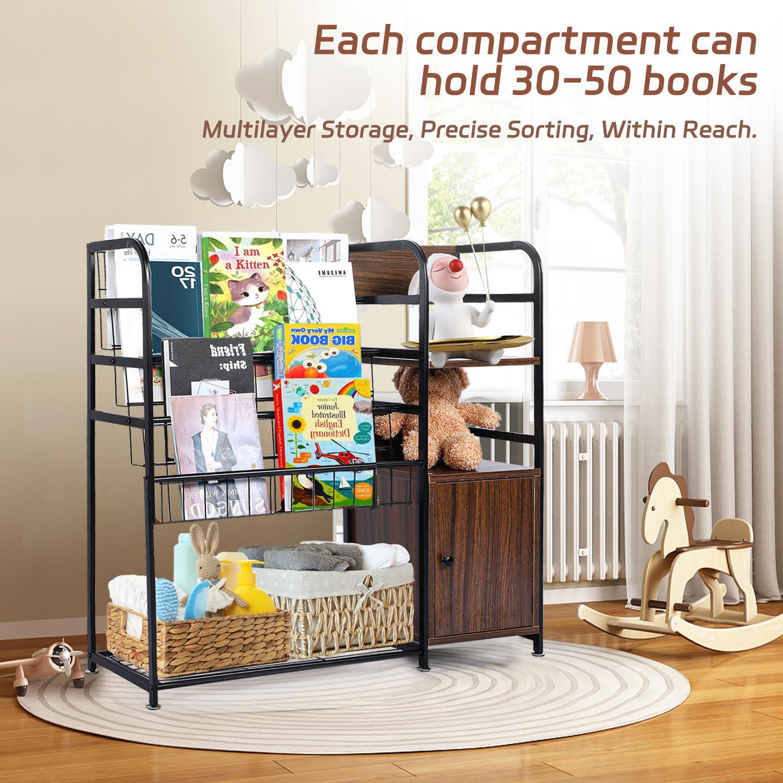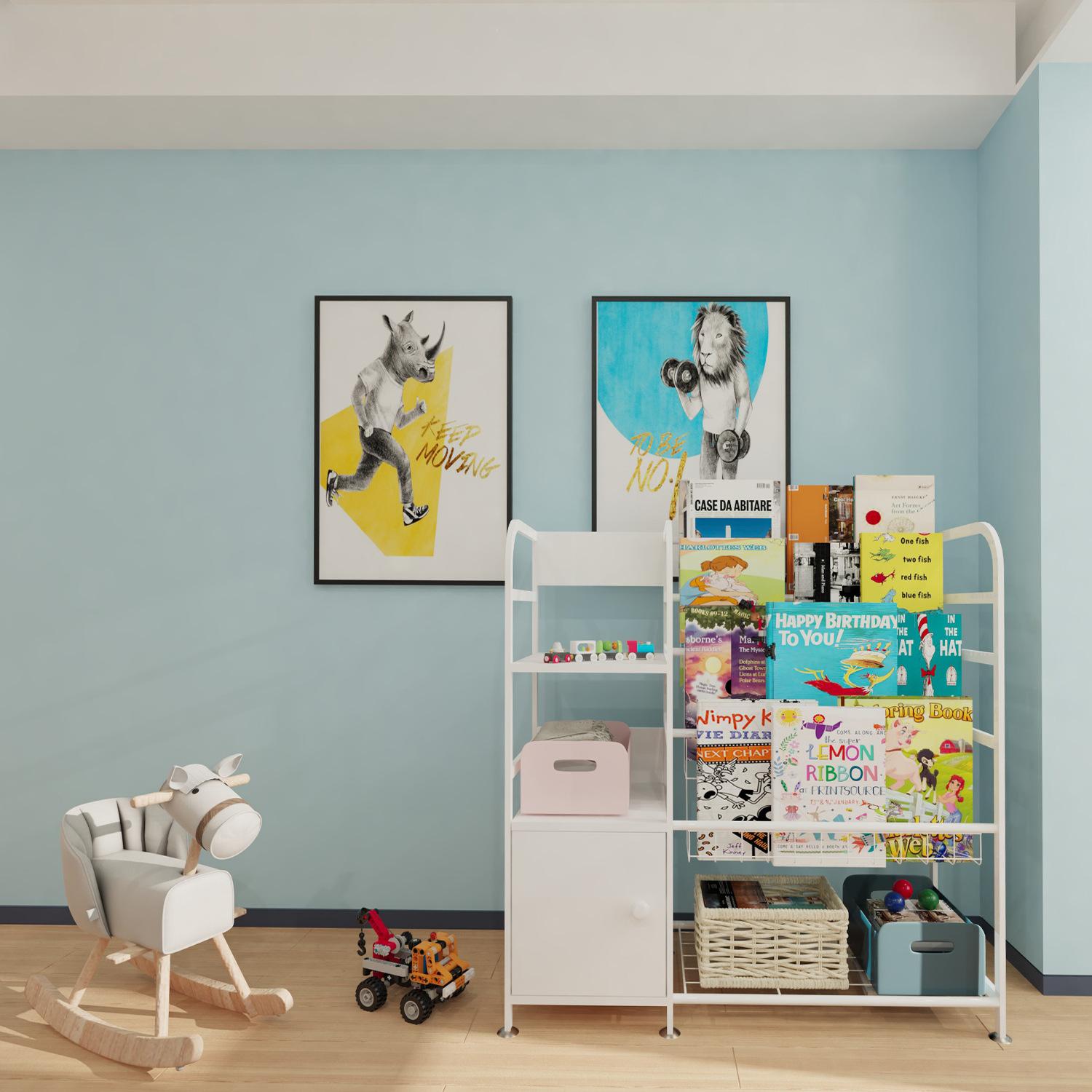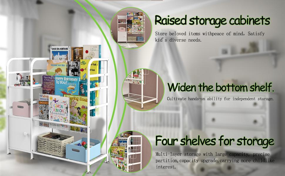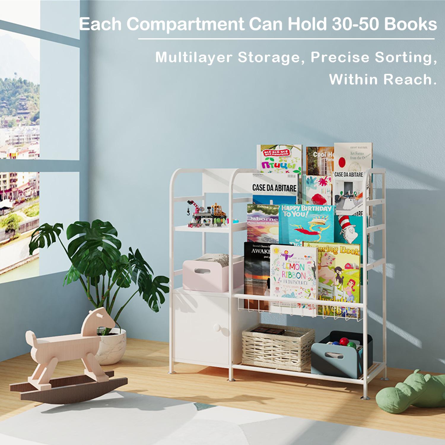 Estante para livros infantis Estante para livros ilustrados Armazenamento de brinquedos Estante para bebês Estante para artigos de papelaria de chão para uso doméstico