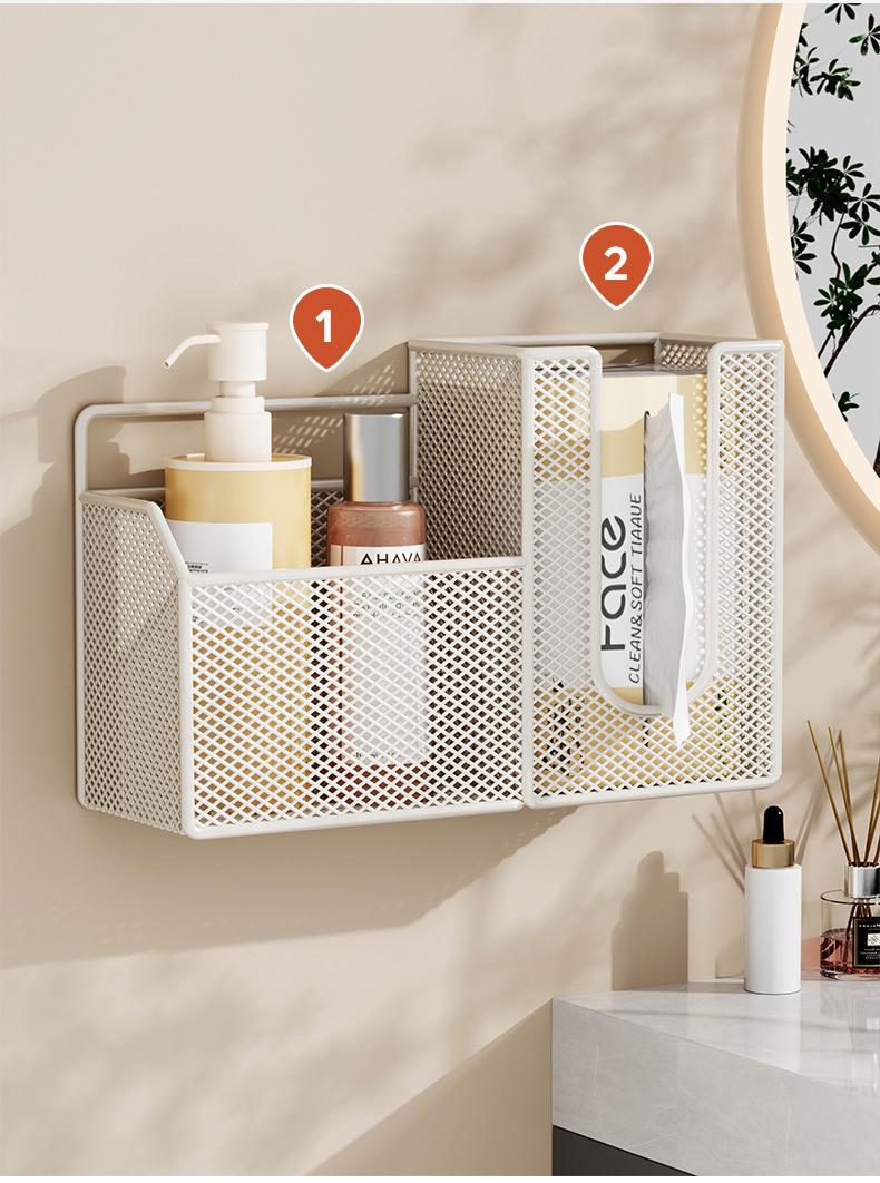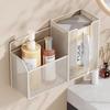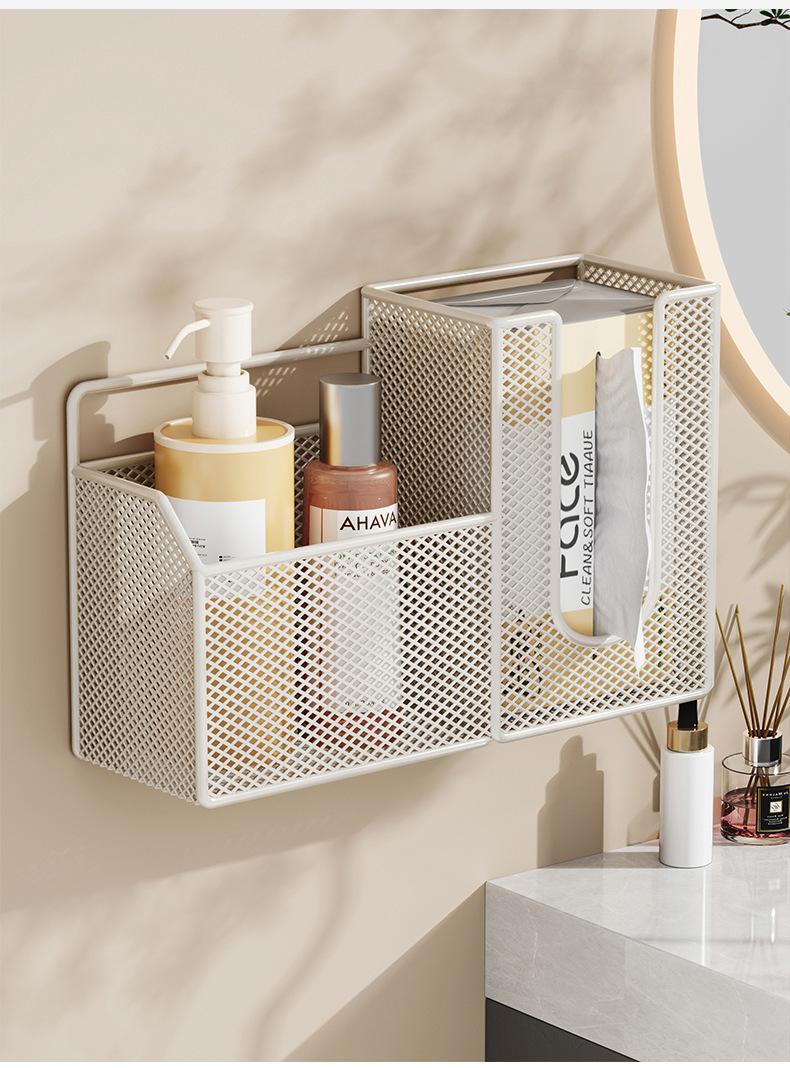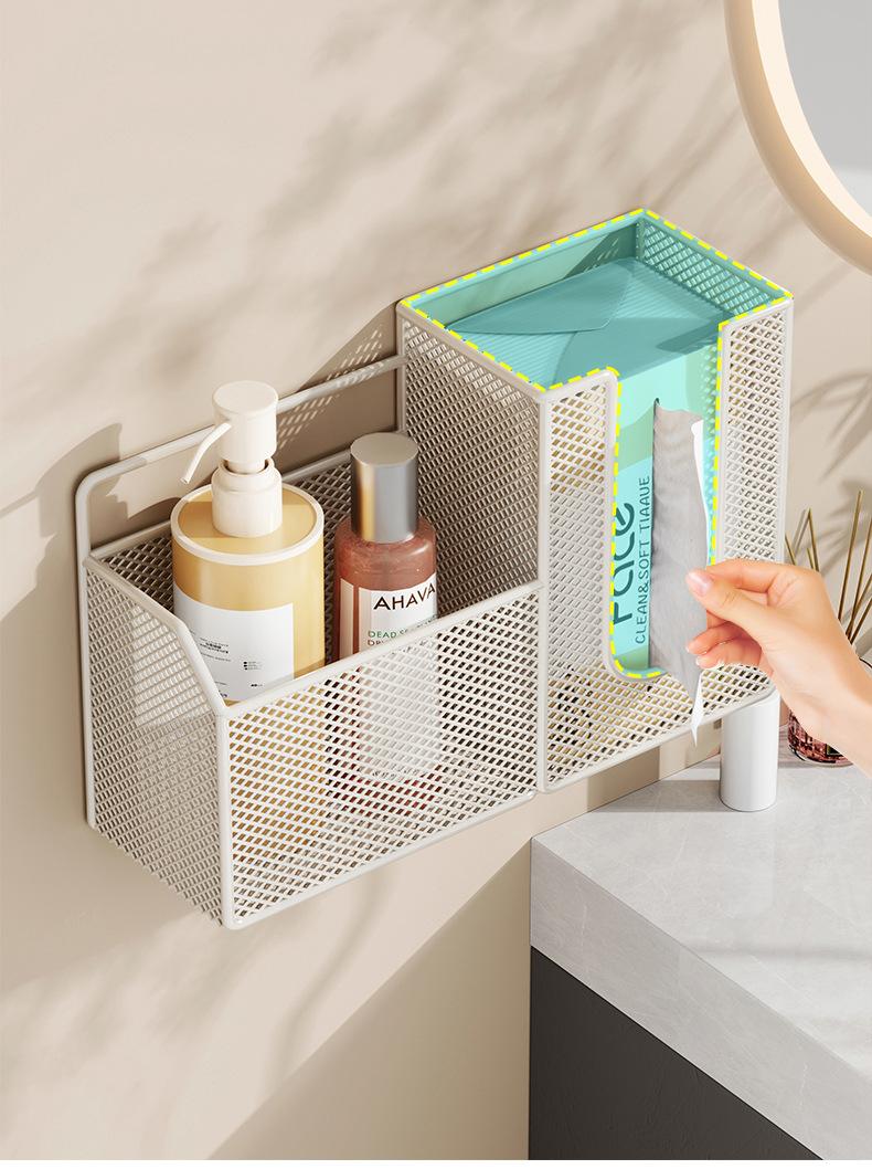 Caixa de lenços de papel para banheiro, caixa de armazenamento de toalhas de rosto montada na parede, banheiro, cozinha, caixa de papel sem perfuração, suporte para rolos