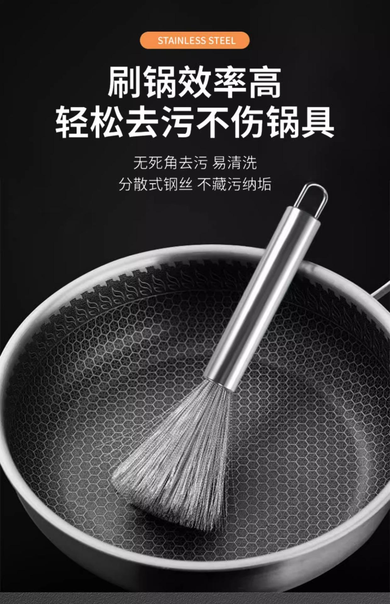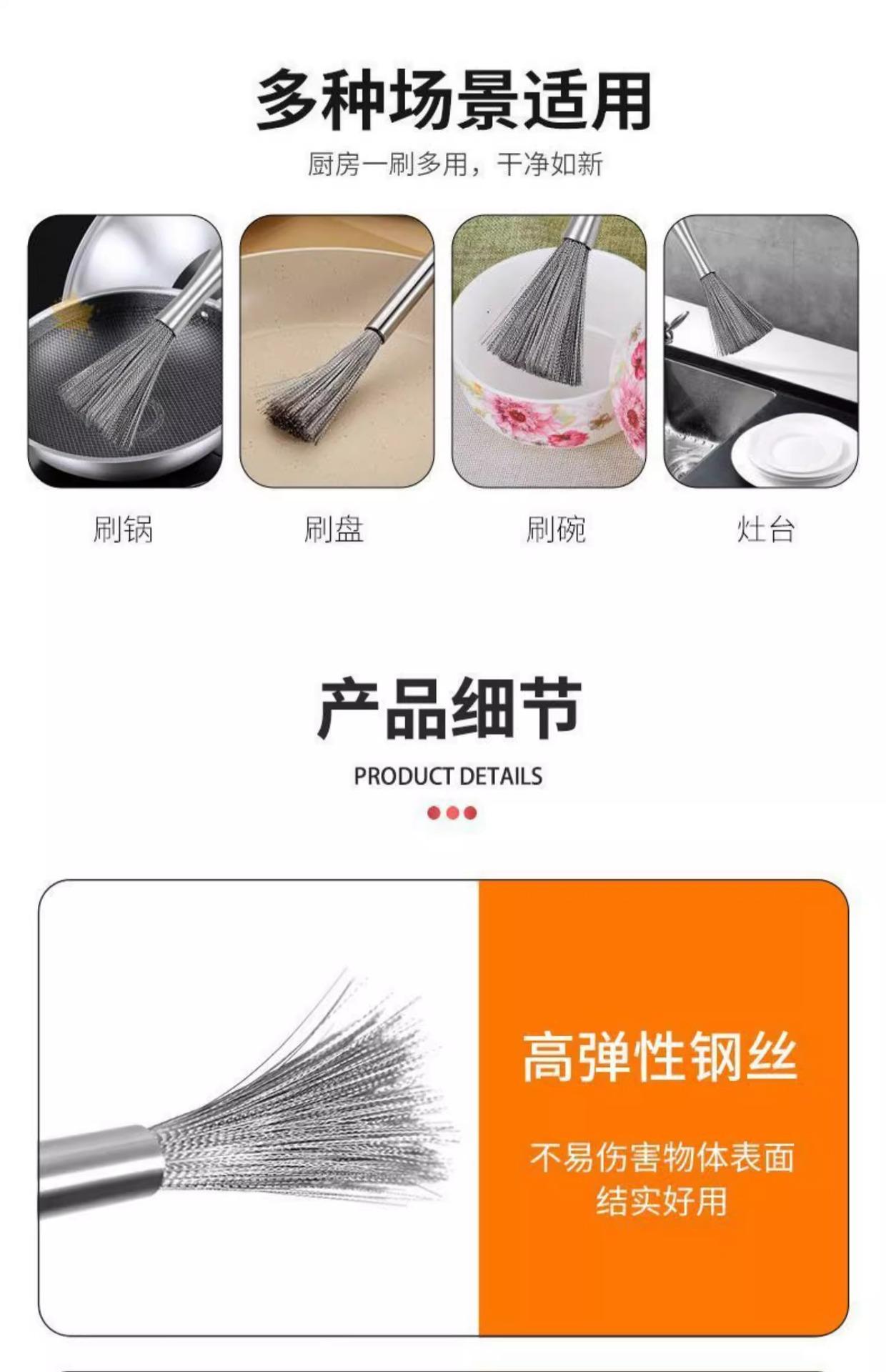 Escova de panela de aço inoxidável cozinha doméstica de lavagem de vaso artefato cantina utensílios de cozinha escova de limpeza especial fio de aço escova de panela de cabo longo atacado