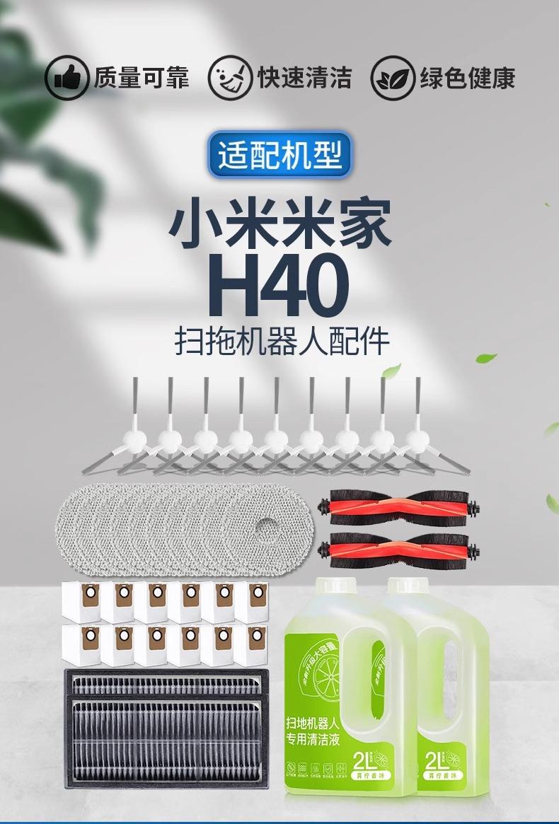 | Huixi é adequado para acessórios de robô de varredura Xiaomi Mijia M40, saco de pó, escova de rolo, escova lateral, filtro, líquido de limpeza, pano |