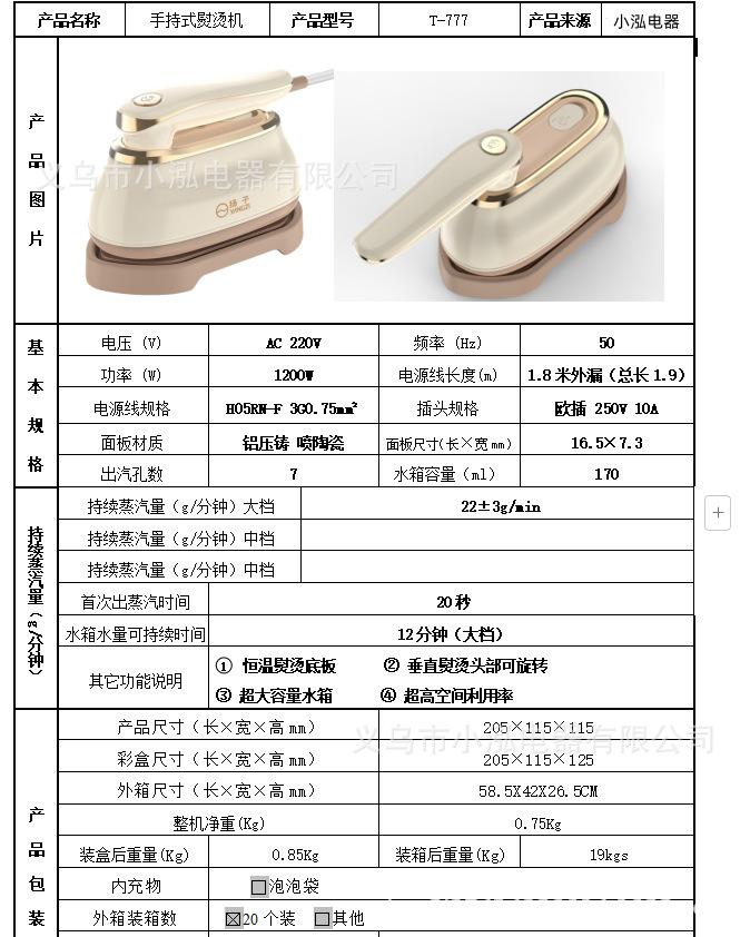 Máquina de pendurar a vapor dobrável, ferro elétrico portátil transfronteiriço, máquina de passar roupa úmida e seca, dormitório doméstico pequeno portátil