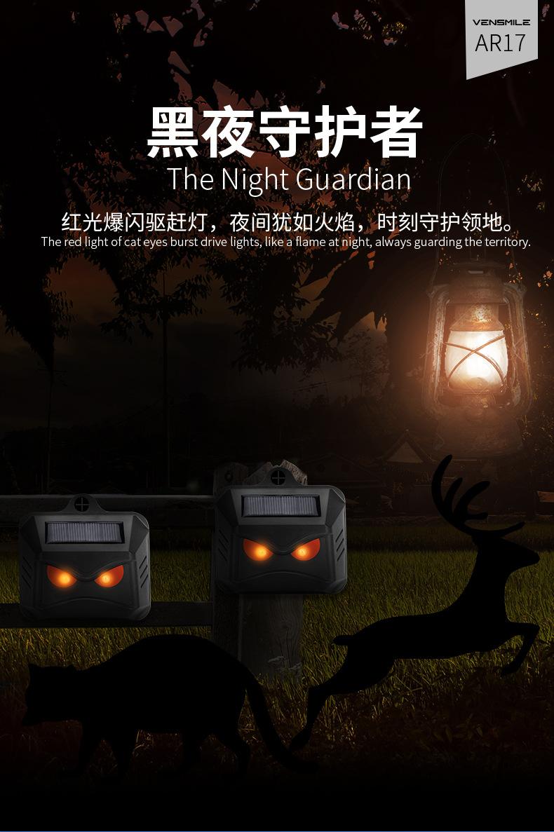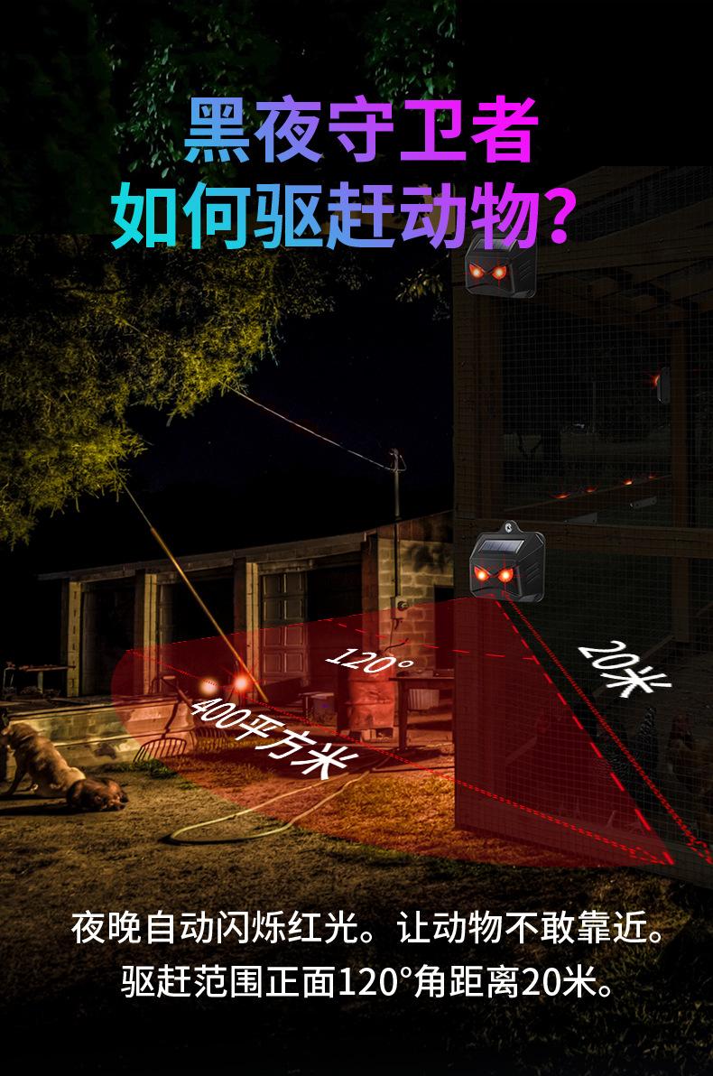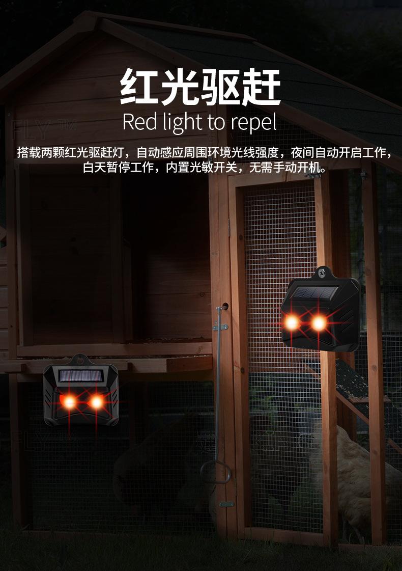Luz vermelha flash solar animal repelente unidade javali cão gato infravermelho indução repelente pássaro solar