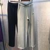 Calças femininas de cintura alta, retas, casuais, de perna larga, esportivas, coreanas, novas calças de facão com cadarço e elástico na cintura, outono