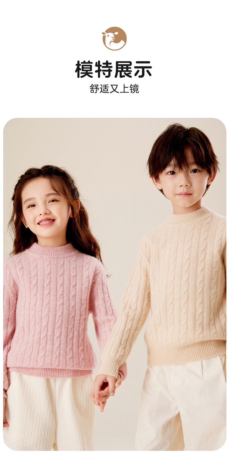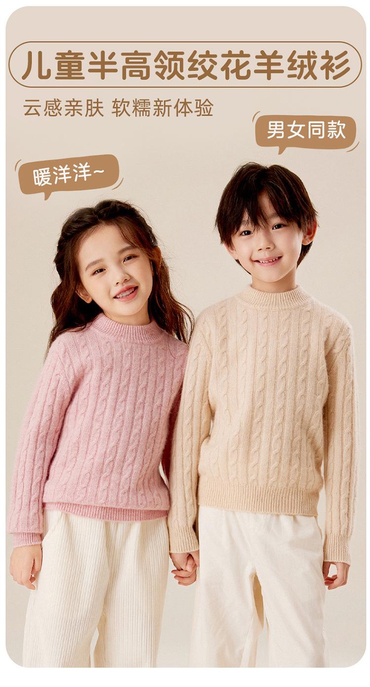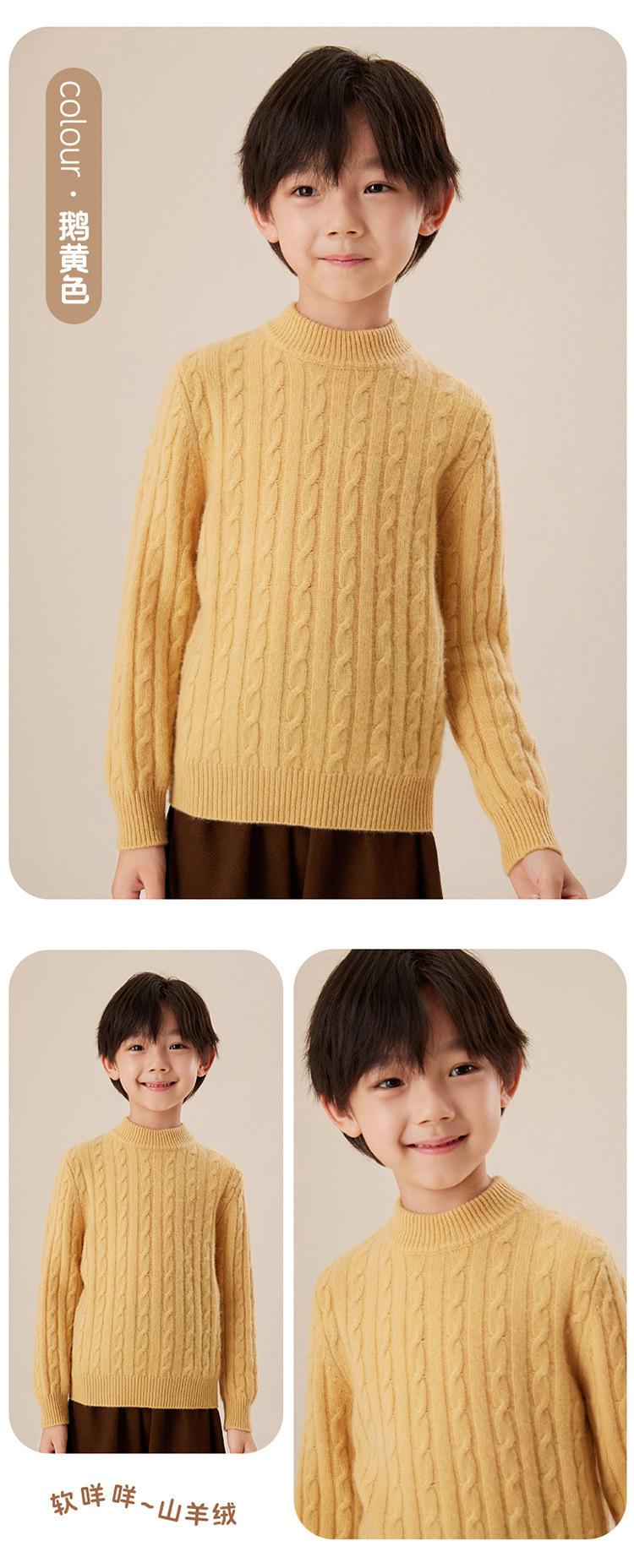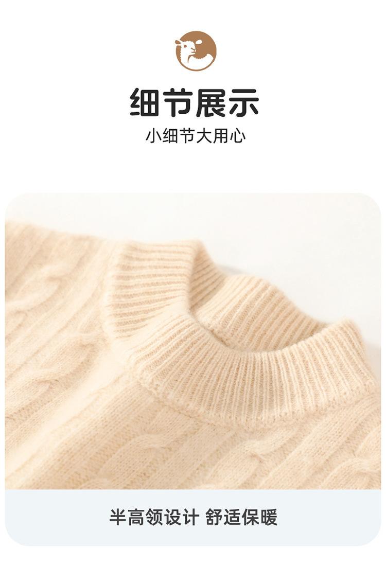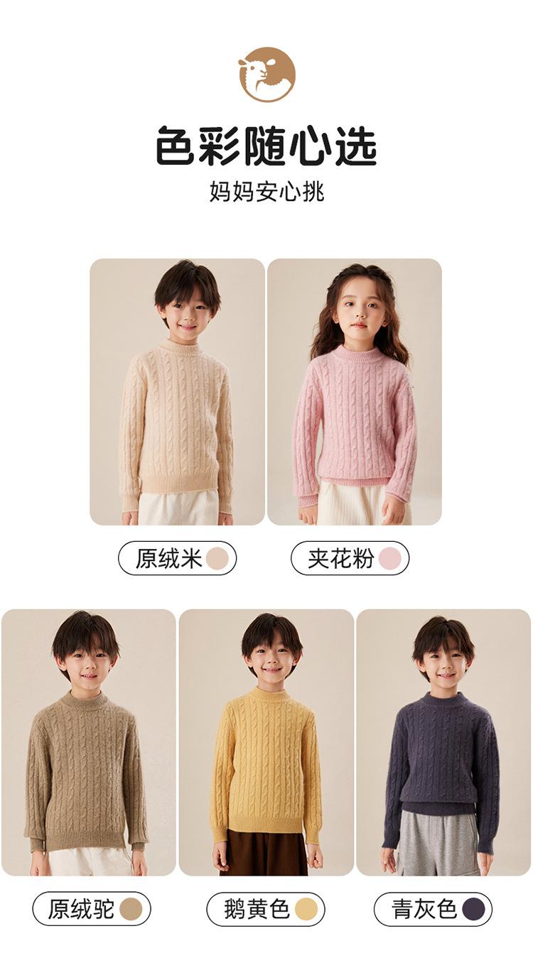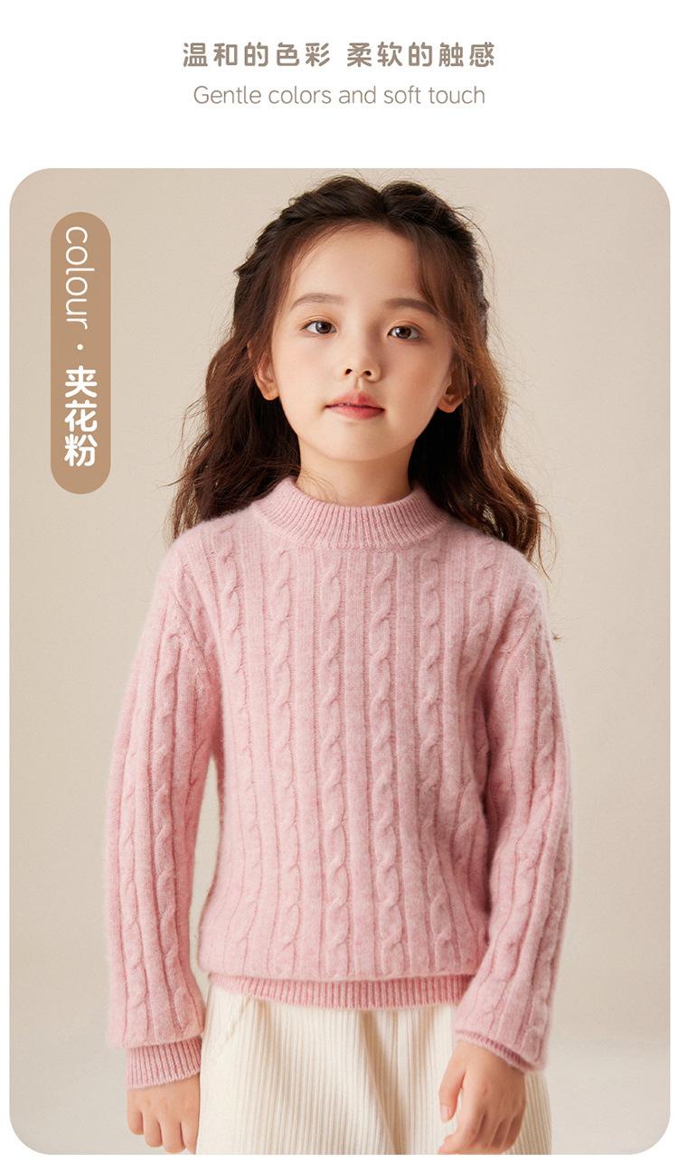 Suéter de gola alta com estampa de flor de cashmere espessado com sete pontos e torção de corpo inteiro para meninos e meninas