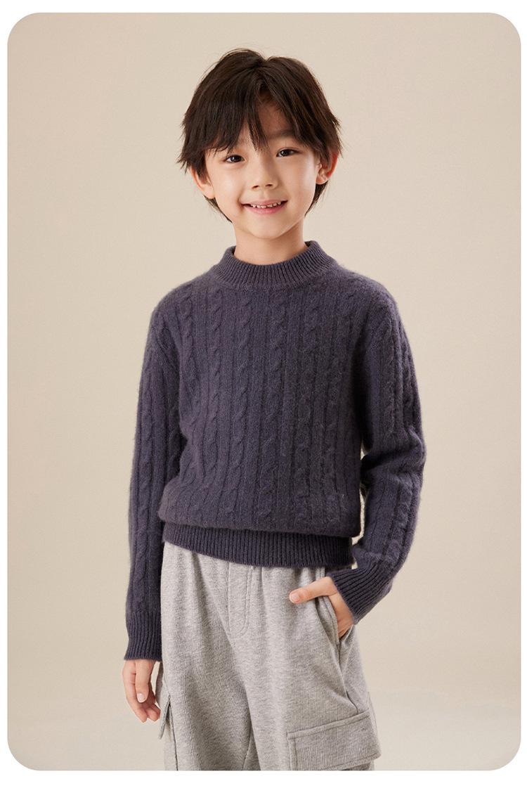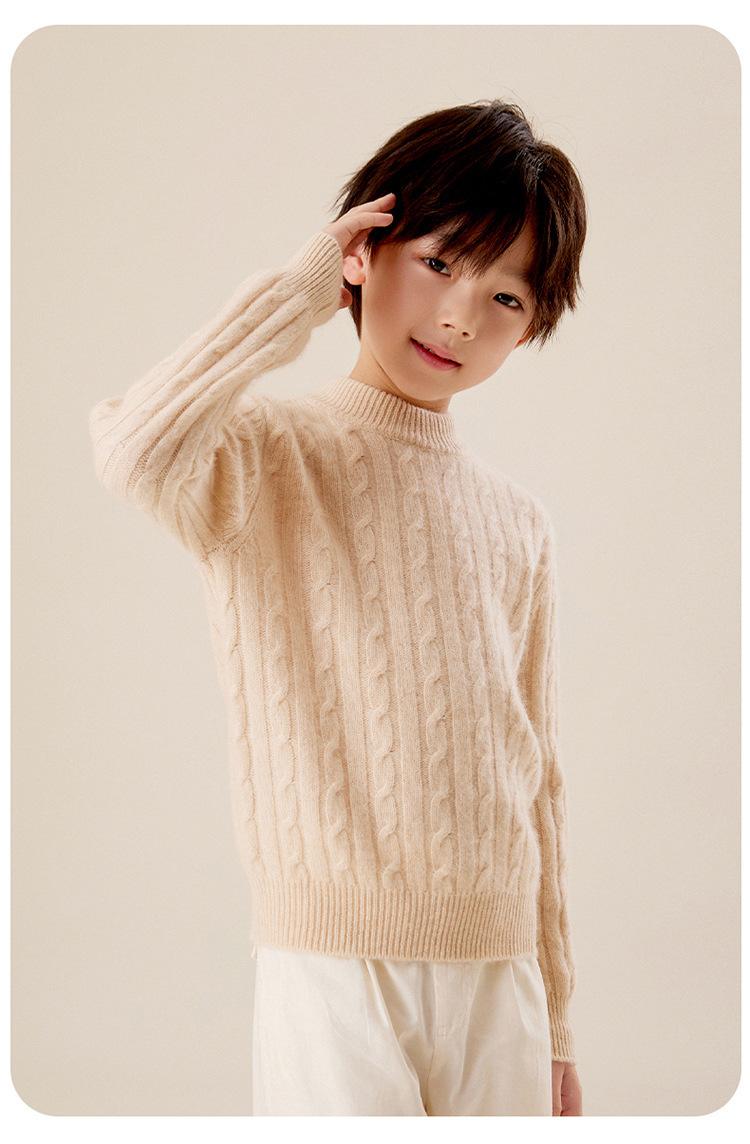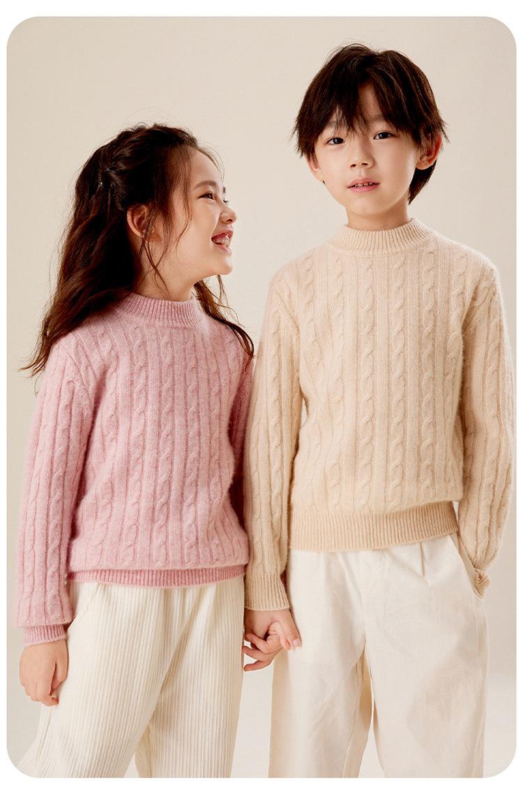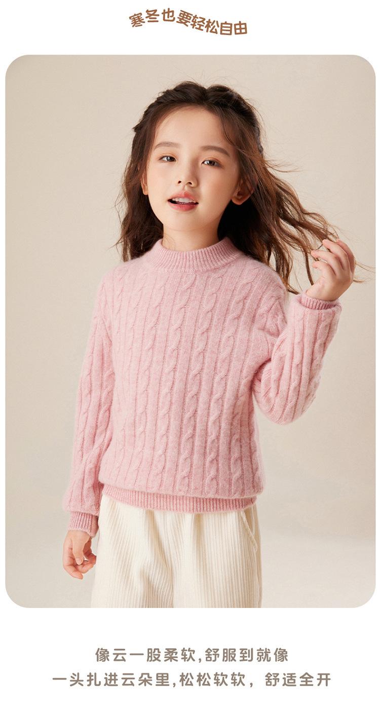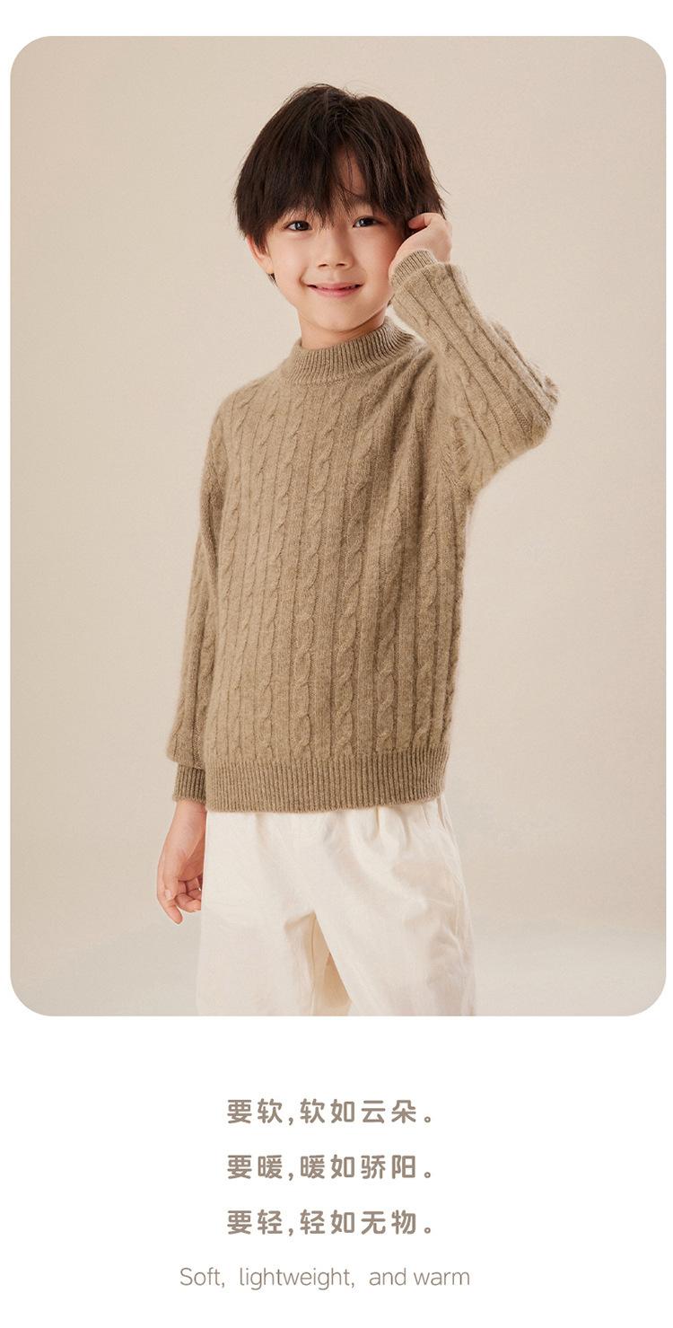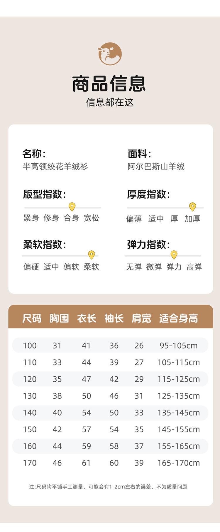 Suéter de gola alta com estampa de flor de cashmere espessado com sete pontos e torção de corpo inteiro para meninos e meninas