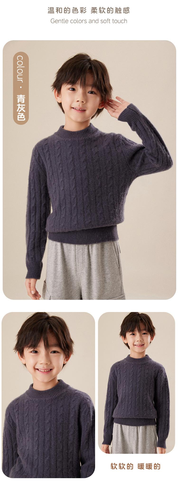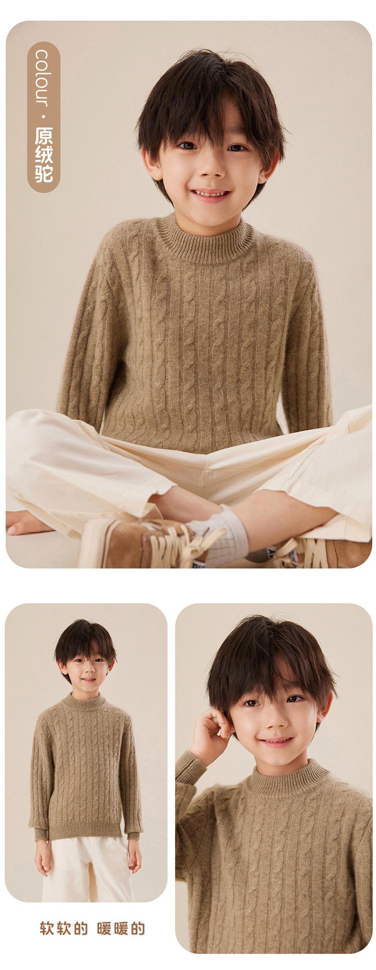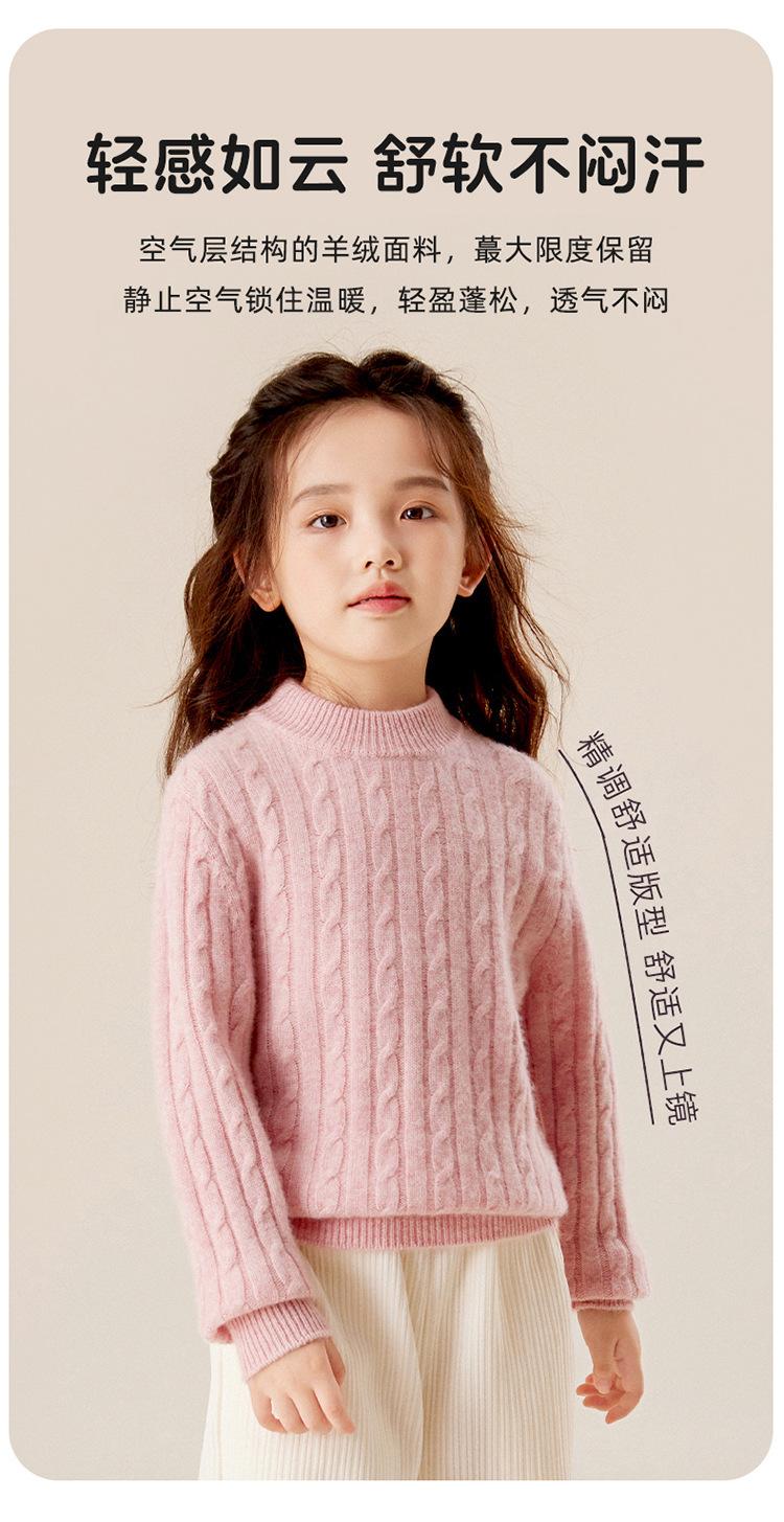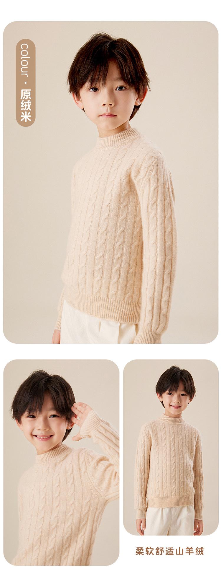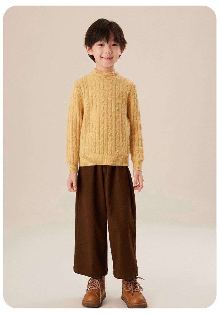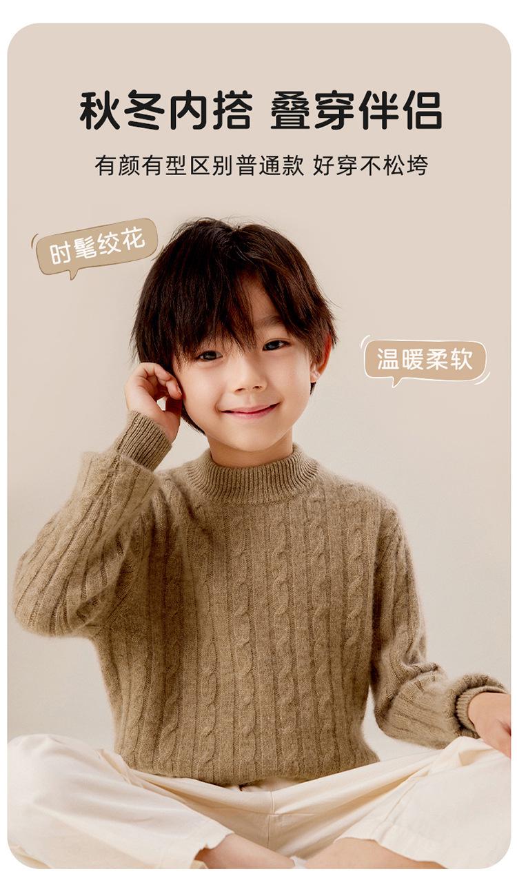 Suéter de gola alta com estampa de flor de cashmere espessado com sete pontos e torção de corpo inteiro para meninos e meninas
