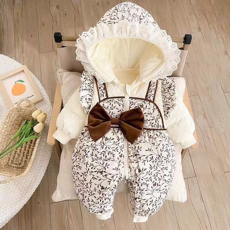 Roupas grossas forradas de lã para bebês recém-nascidos, moda inverno, roupas estilosas para meninas engatinharem, roupas para sair