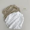 Camisa de roupas infantis masculinas e femininas de primavera e outono, estilo ocidental para bebês, personalidade infantil, estilo mori moderno, estilo coreano, cor sólida, moda, popular na internet, camisa branca