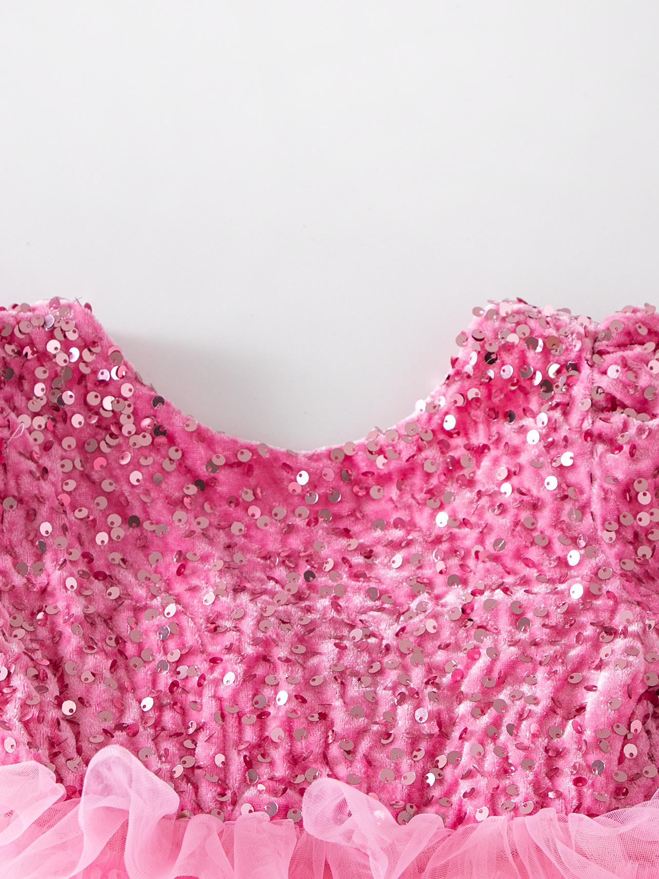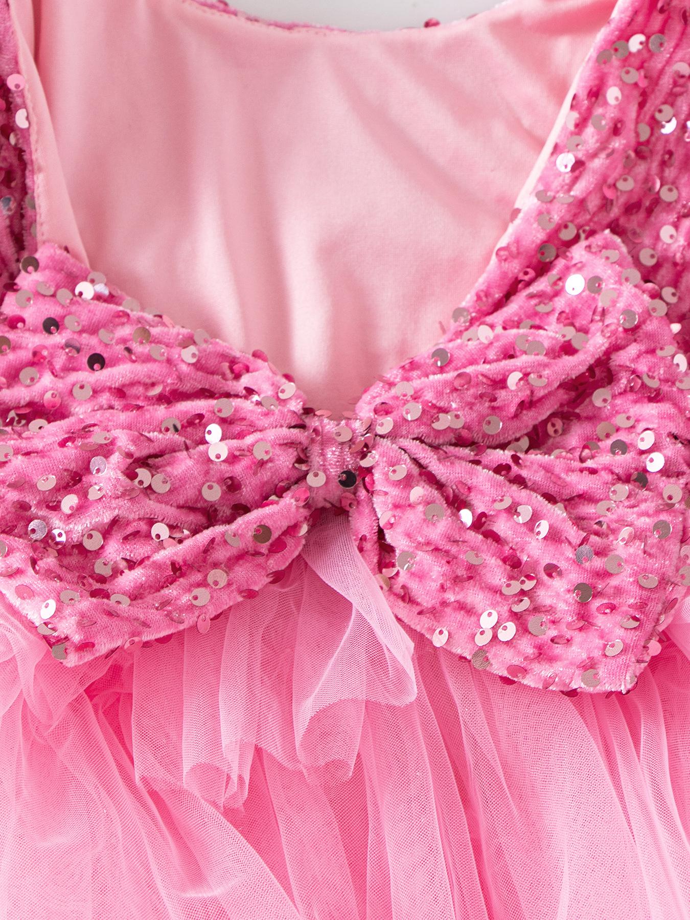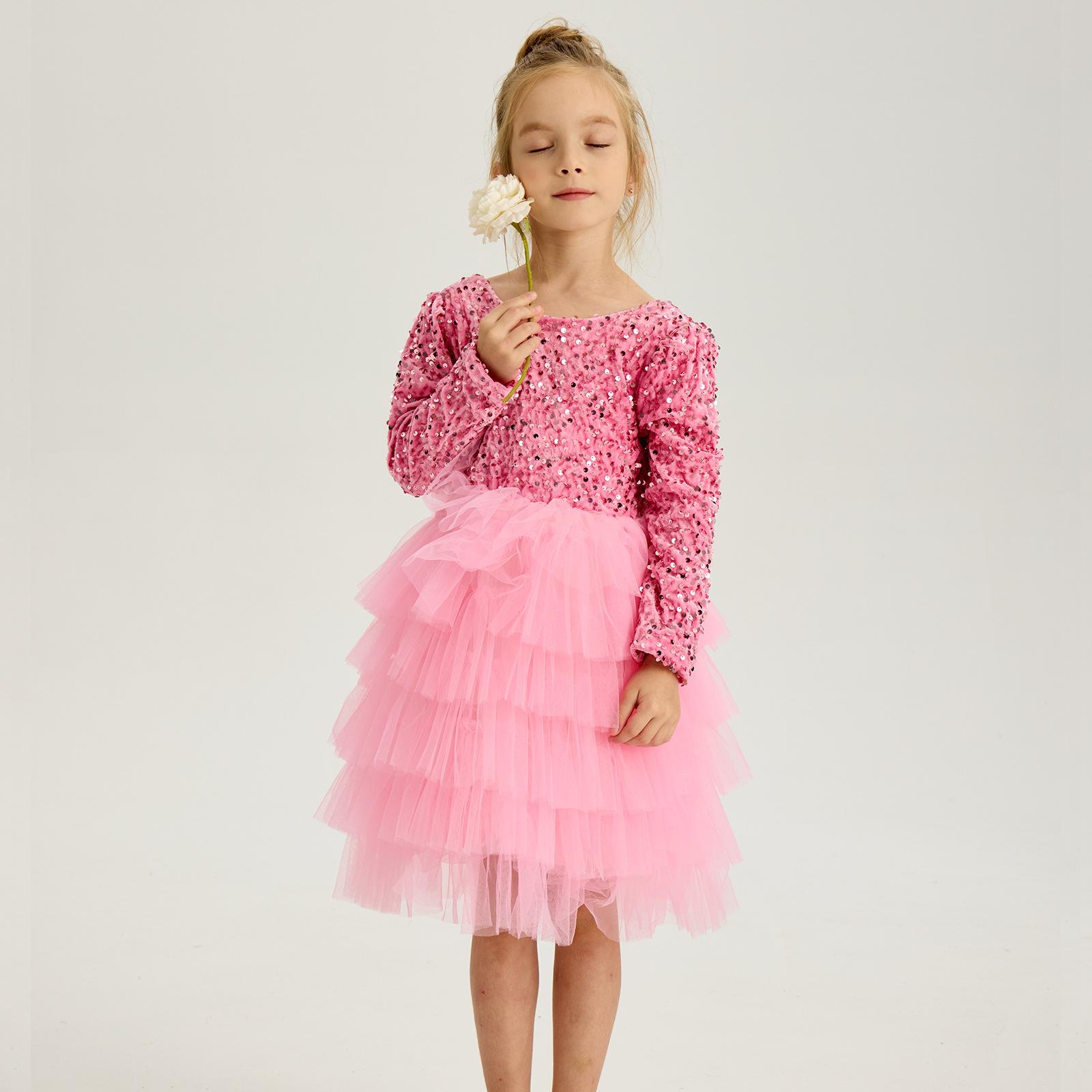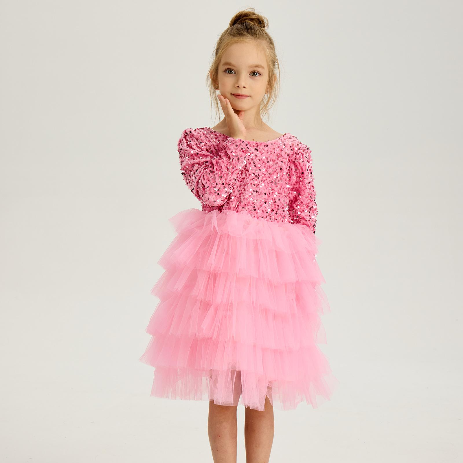 Vestido de Menina Sem Costas Laço Temu Primavera & Outono Saia Tutu Vestido de Manga Comprida com Lantejoulas Vestido de Princesa Infantil