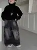 Roupa Infantil 2025 Inverno Novo Estilo Calças de Perna Larga Jeans Calças Compridas Forrado com Lã Espessado Moderno Estiloso Bonito