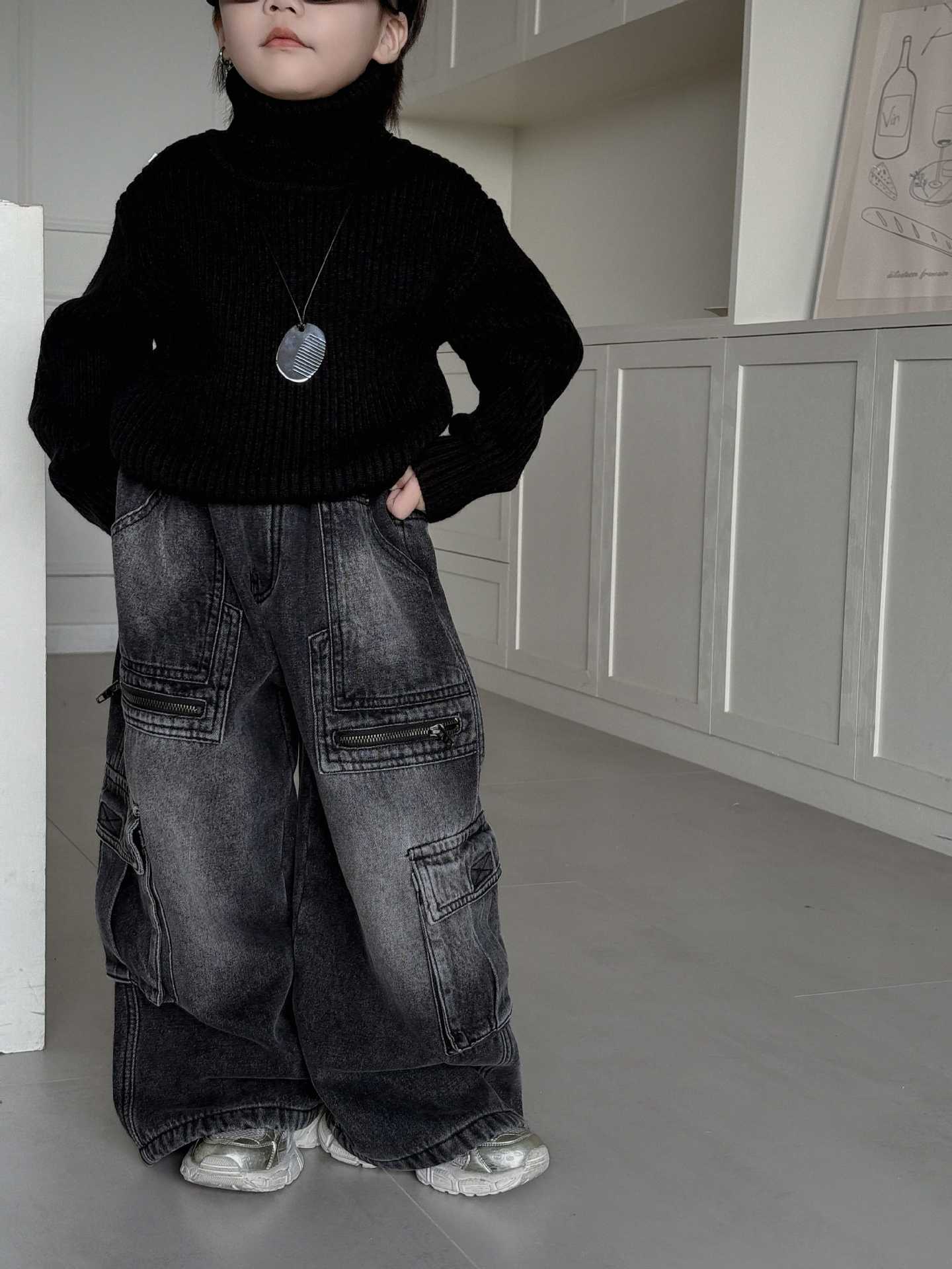 Compre Roupa Infantil 2025 Inverno Novo Estilo Calças de Perna Larga Jeans Calças Compridas Forrado com Lã Espessado Moderno Estiloso Bonito no atacado no Joom.pro