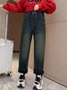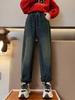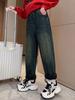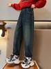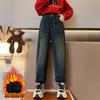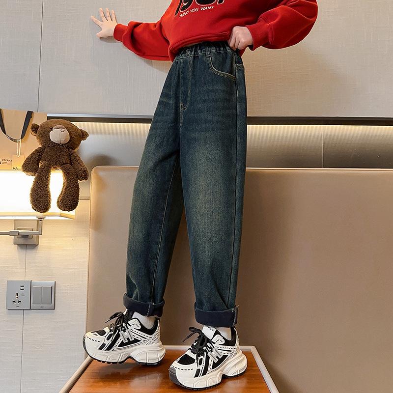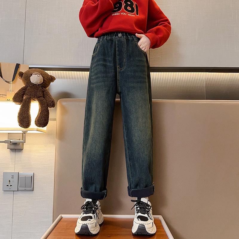 Calças femininas primavera e outono roupas da moda outono calças papai 2023 outono novo médio e grande crianças meninas jeans forrados de lã