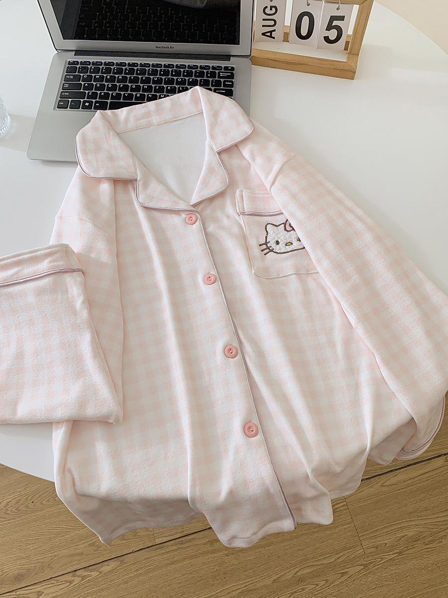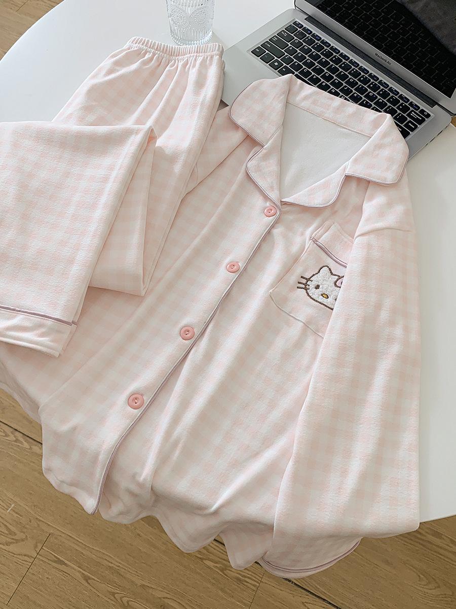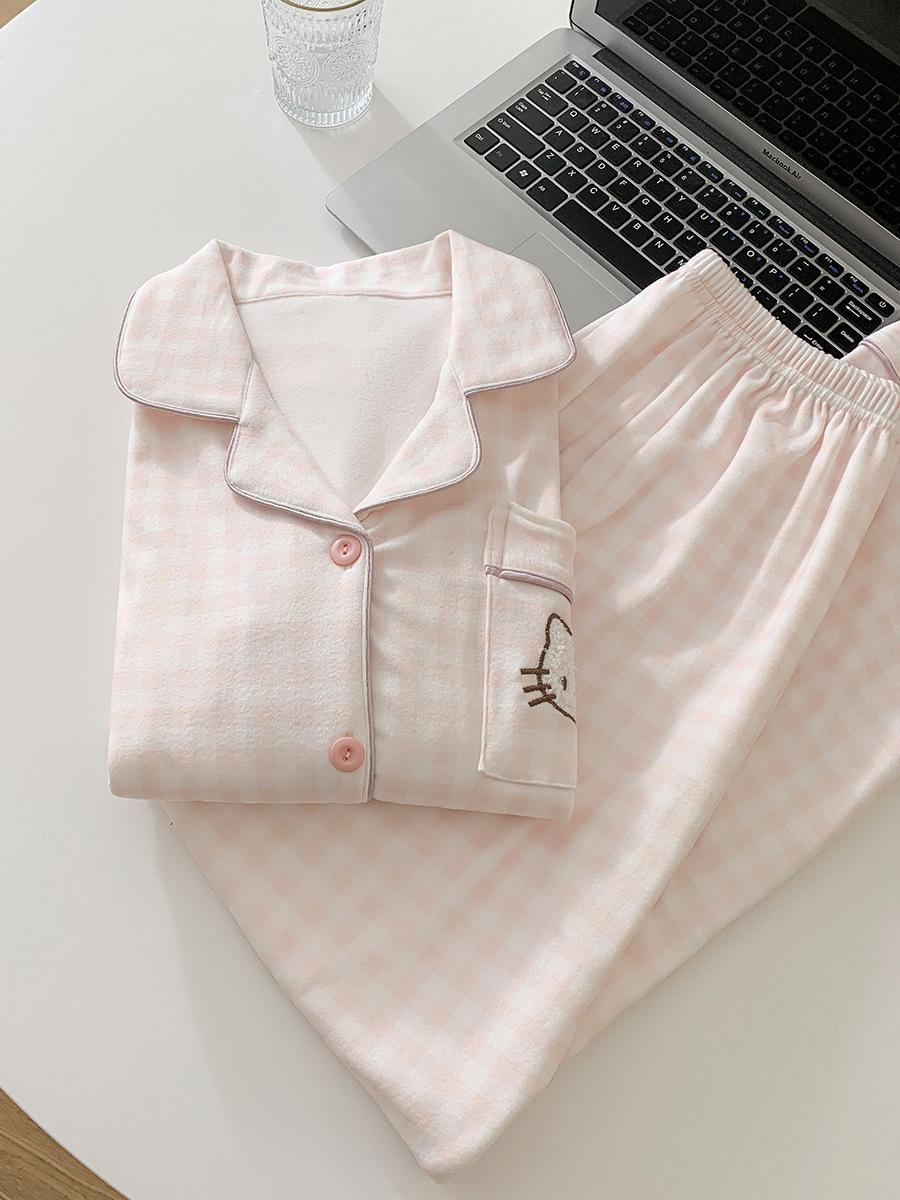 Pijama de lã coral para mulheres forrado de lã de inverno engrossado para meninas bonitas na Internet Popular outono e inverno Nova flanela roupas para casa