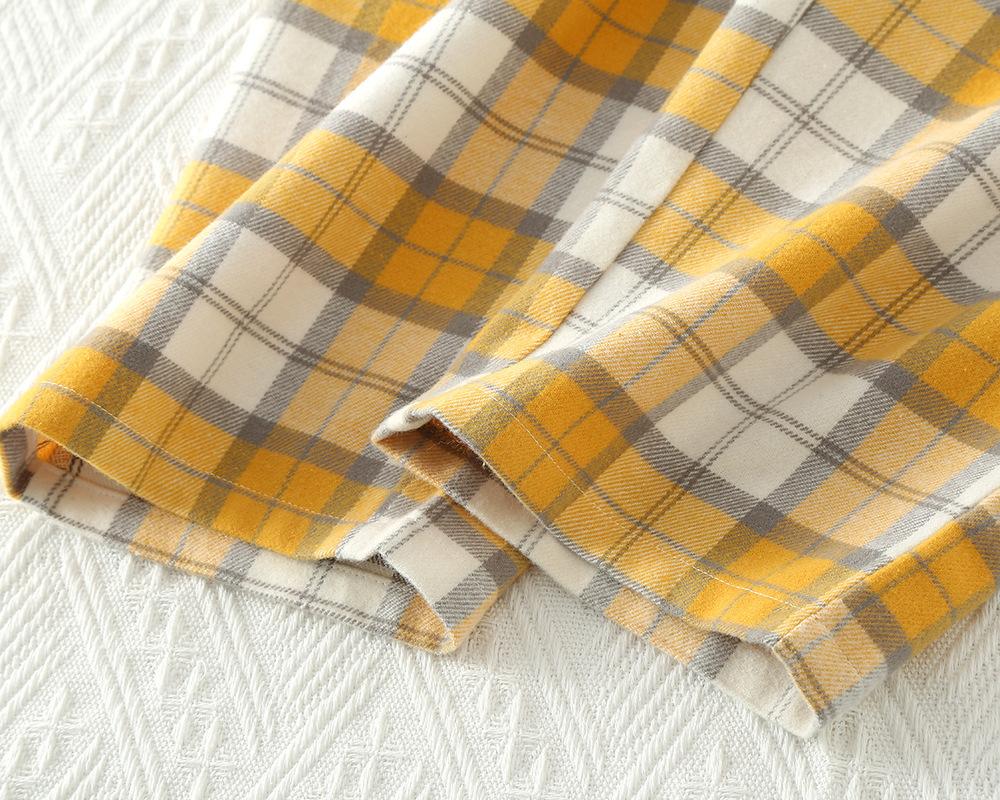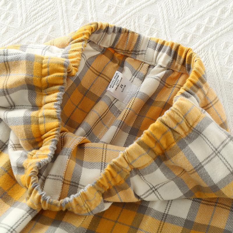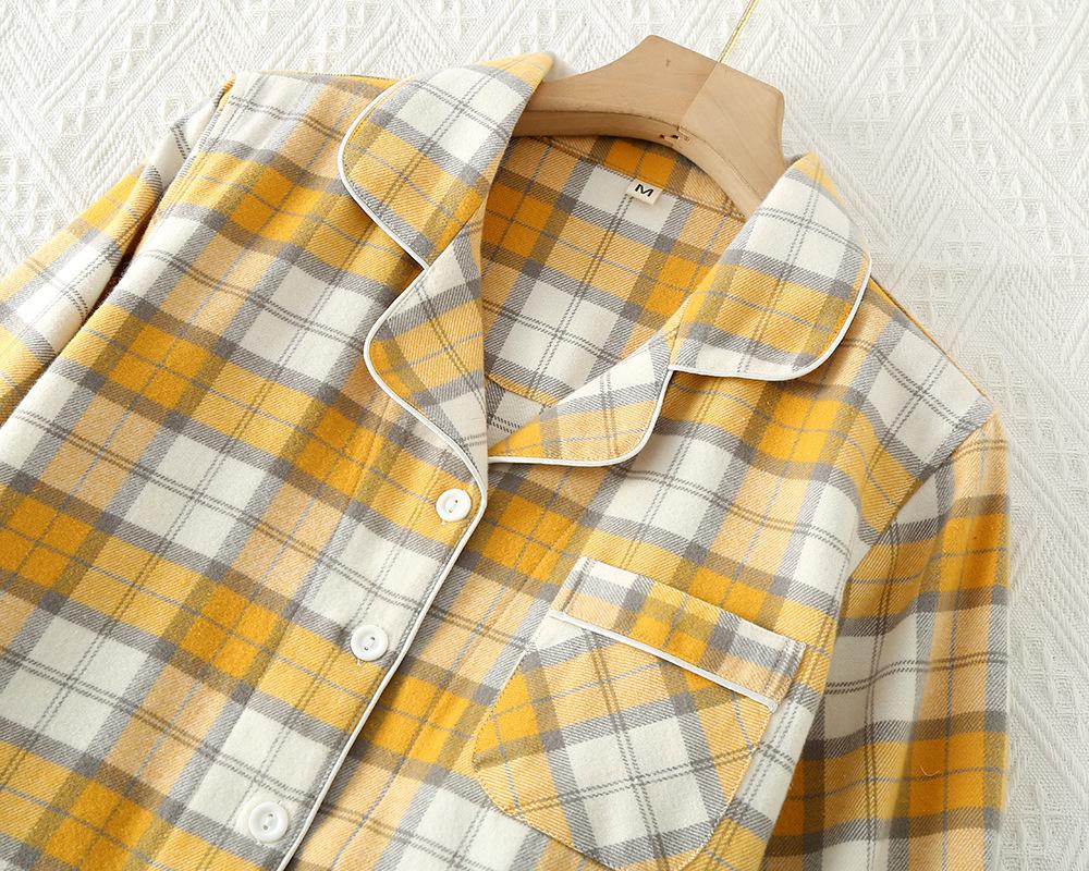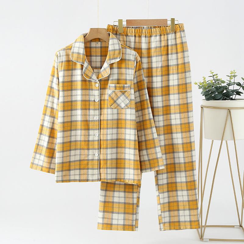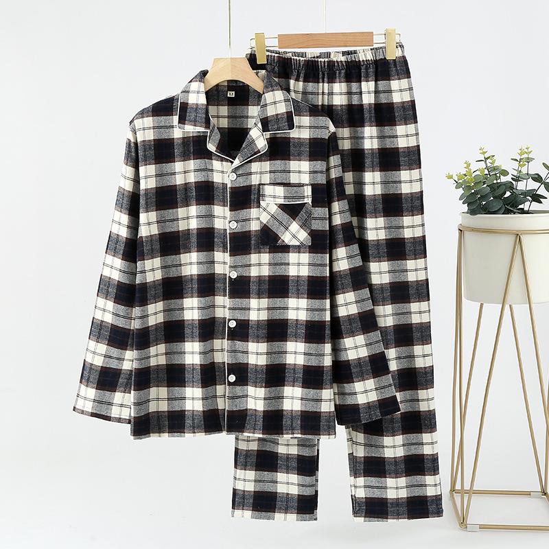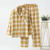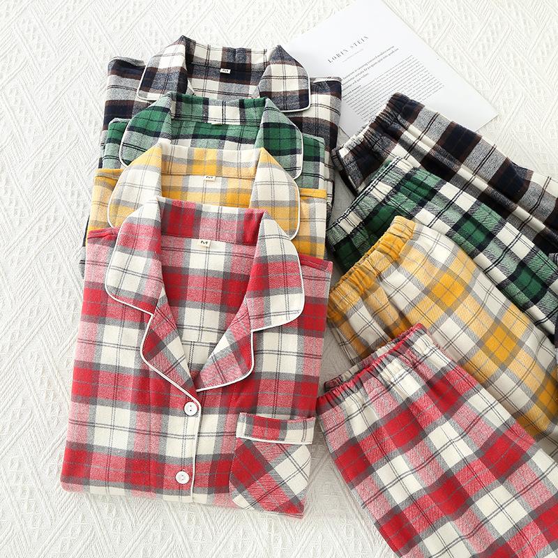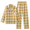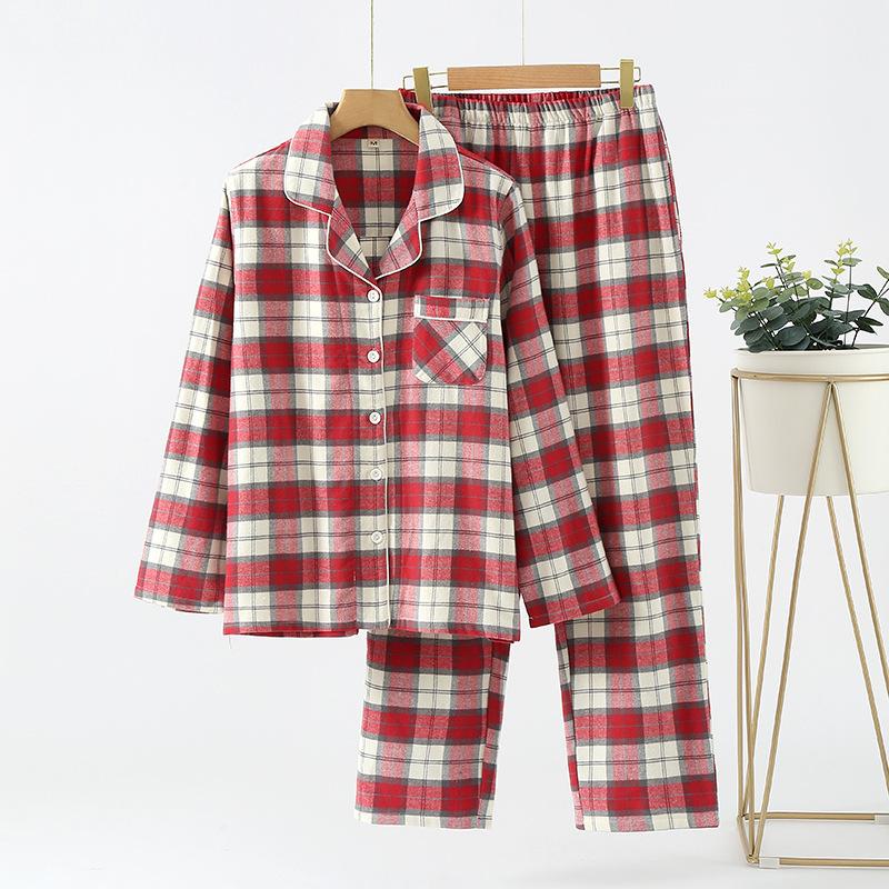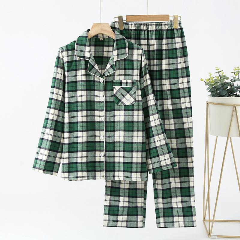 Wuyin Style Home Clothes terno Xadrez Feminino Puro Algodão Lixar Pijamas Masculino Manga Longa Primavera e Outono Engrossado Pijama de Casal