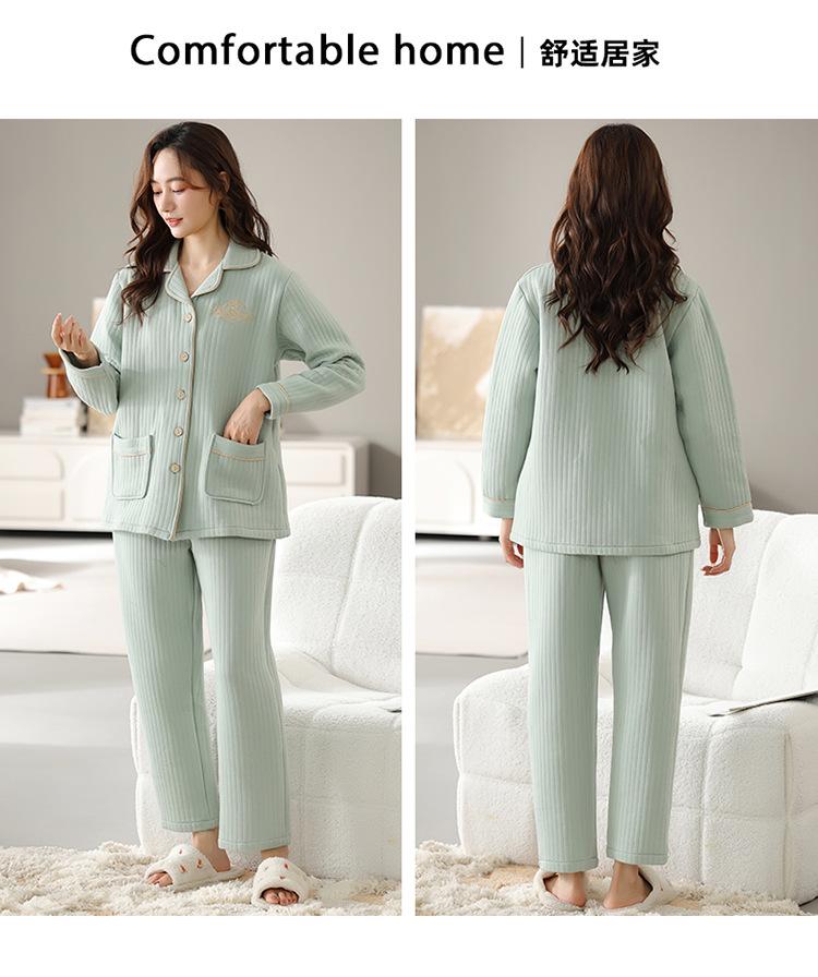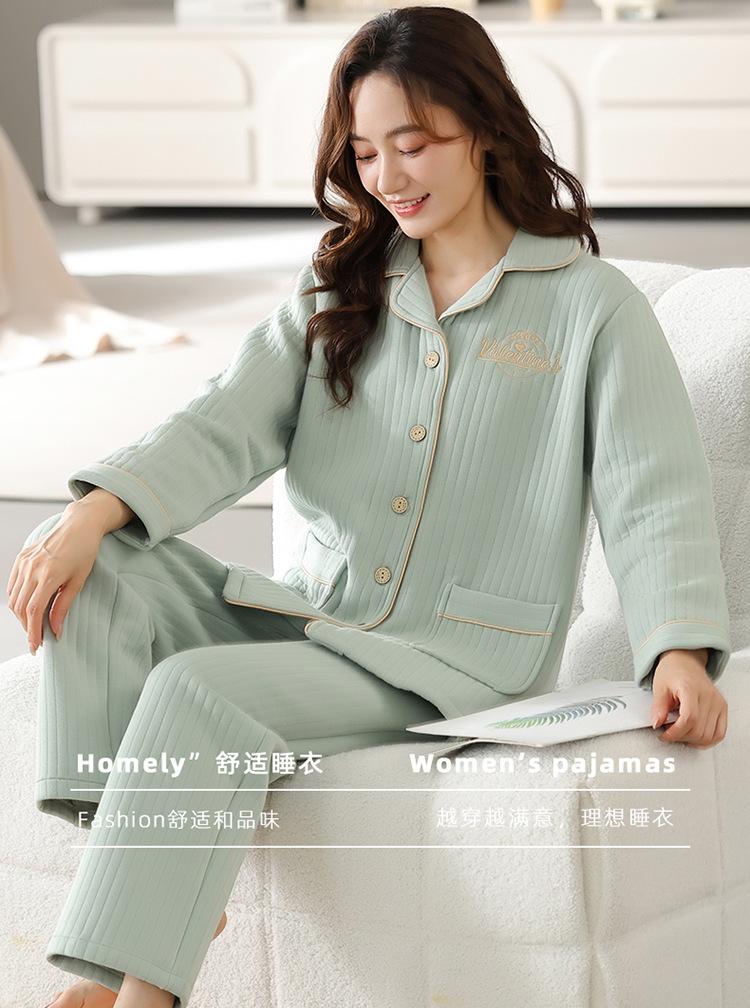 Pijamas grossos de outono e inverno para mulheres, sanduíche de algodão espesso, terno quente, algodão aerado espesso, roupa para casa