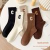 Meias Femininas de Algodão Puro para Outono e Inverno, Meias Longas Versáteis de Cano Alto da Moda com Letra C Bordada, Meias Casuais Esportivas de Cano Médio Absorventes de Suor