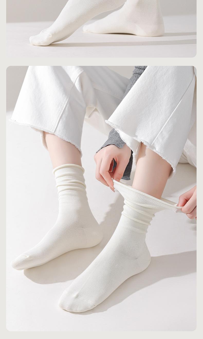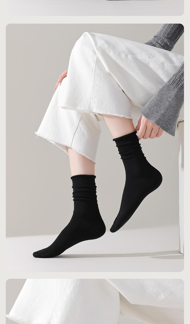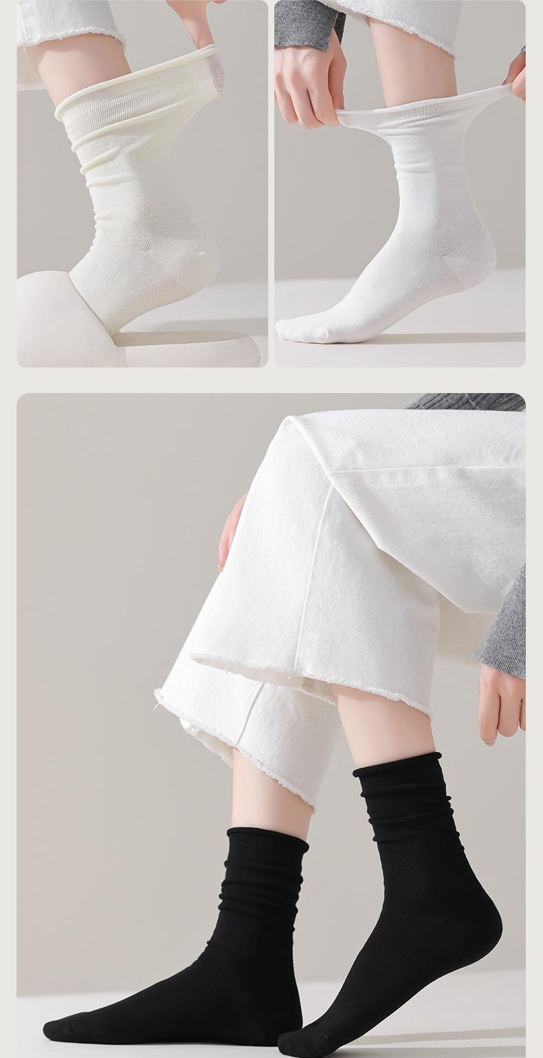 Meias de Algodão Puro Meias Felpudas Femininas Cor Pura Versátil Meias sem Costura para Meninas Outono e Inverno Meias Antibacterianas e Desodorantes Simples Femininas