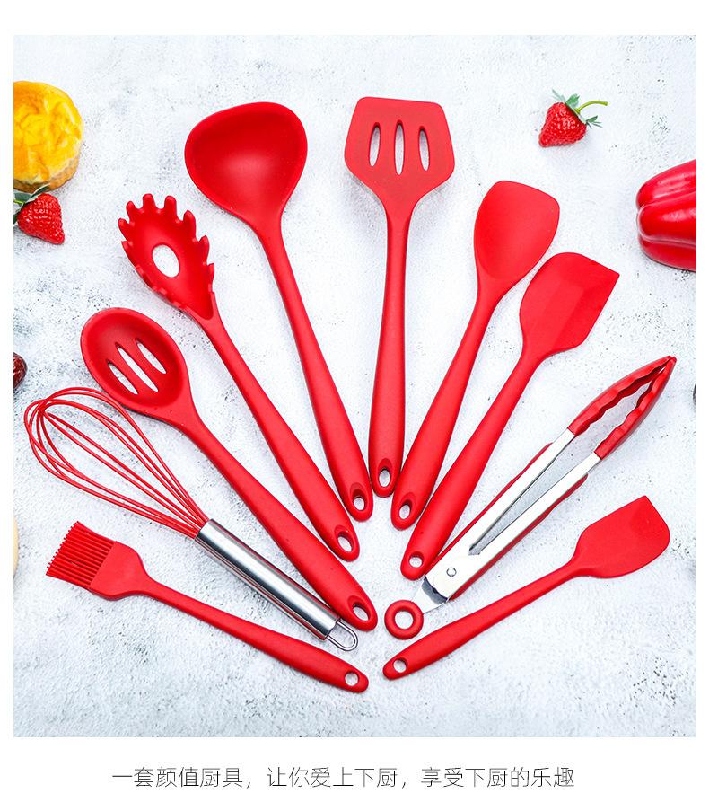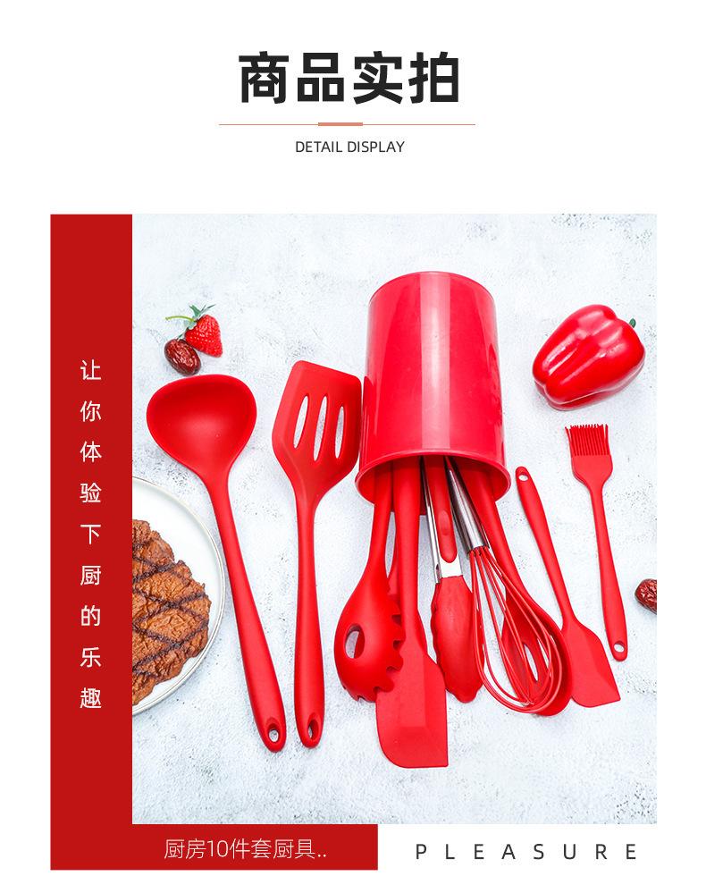 Compre Barril de armazenamento transfronteiriço Conjunto de utensílios de cozinha de silicone com 10 peças Panela antiaderente Cor de silicone Pá de cozinha Colher Utensílios de cozinha criativos no atacado no Joom.pro