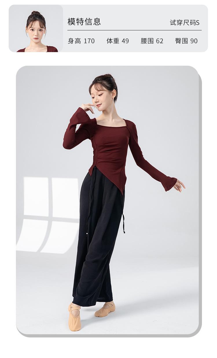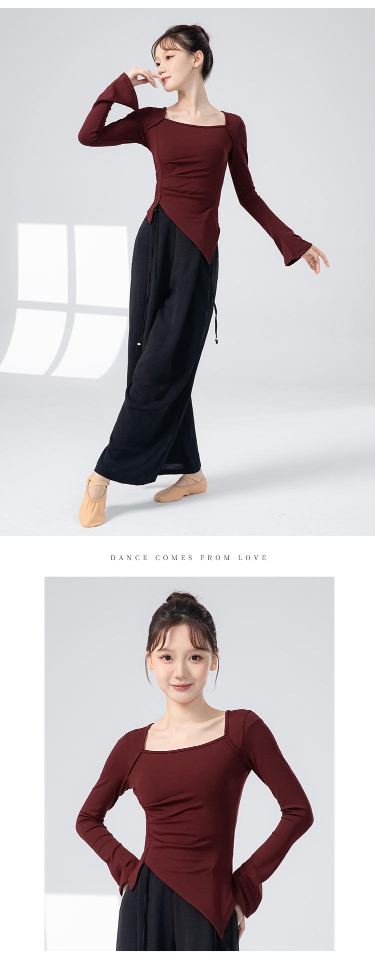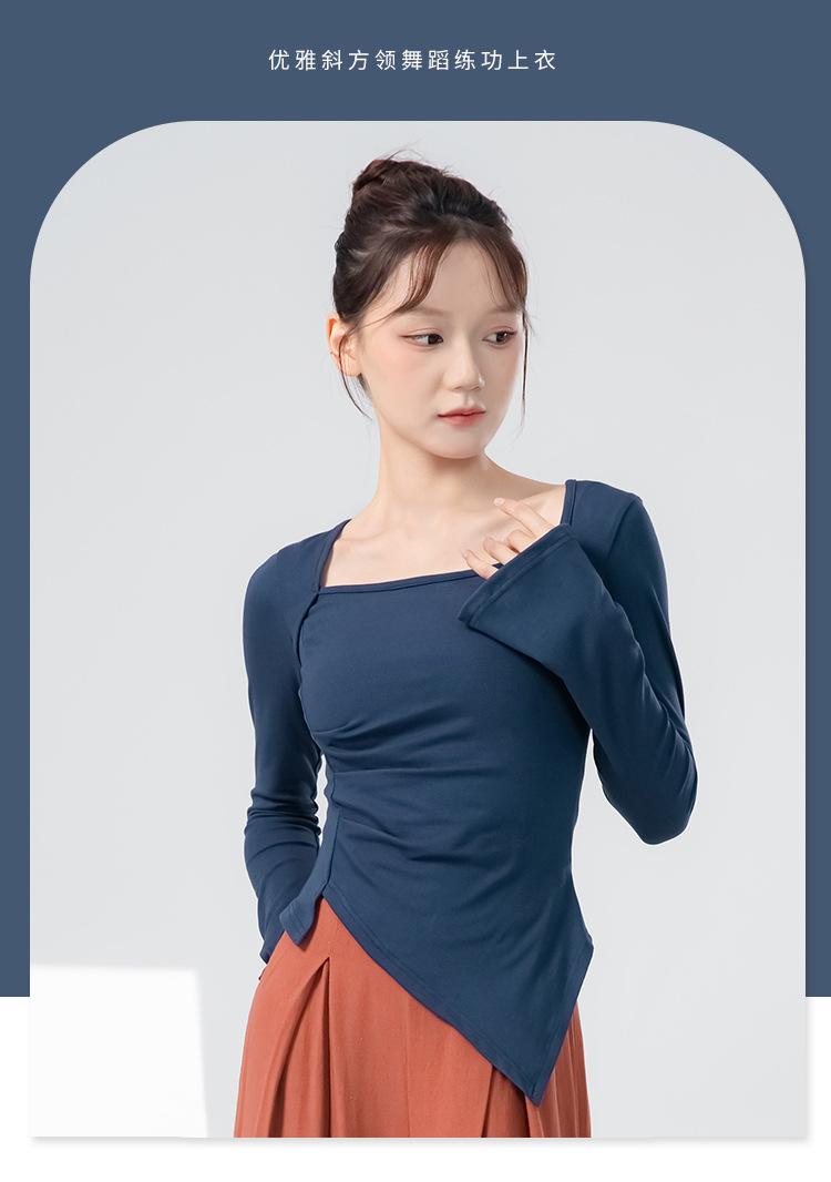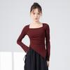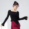 Roupas de Prática de Dança Moderna para Mulheres, Roupas de Dança de Manga Comprida Novas com Decote Quadrado, Ajuste Slim, Tops de Collant Diário para Dança Clássica