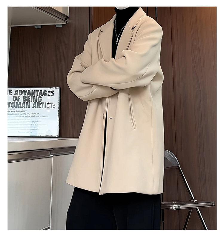 Outono e inverno novo material de lã terno de lã masculino jaqueta solta top elegante casaco de lã solto