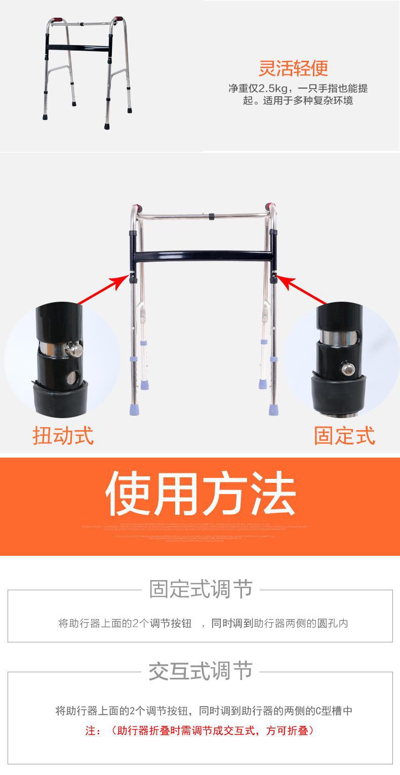 Ao usá-lo, primeiro mova um lado para a frente, depois mova o lado restante para a frente e mova para frente alternadamente para frente e para trás. É adequado para pacientes com equilíbrio ruim em pé, força muscular ruim dos membros inferiores ou idosos, especialmente para ir ao banheiro.