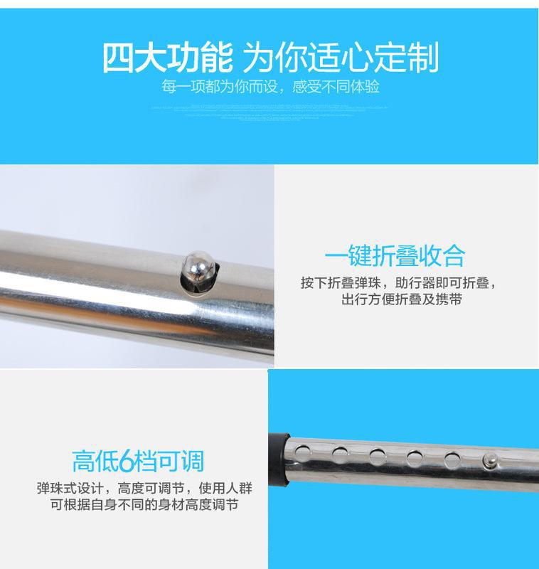 Este produto é um andador de alta qualidade (andador). Você pode dobrá-lo para armazenamento pressionando a fivela superior da mola do meio. O andador adota um design de torção de alta tecnologia. Ao usá-lo, você pode mover um lado para a frente primeiro e, em seguida, mover o lado restante para a frente e mover para a frente alternadamente para frente e para trás. É mais conveniente, mais coordenado e mais econômico do que o antigo tipo fixo! Pode ser ajustado para 5 níveis de altura ~ e é equipado com fivelas superiores de mola nos quatro pés. Você pode ajustar a altura do andador pressionando-o com a mão. A parte da empunhadura é coberta com material antiderrapante e não é fácil de escorregar da mão. O pé do andador é equipado com uma base de borracha para aumentar o atrito com o solo, tornando-o mais seguro de usar. Há uma barra horizontal reforçada no meio para tornar o andador mais forte e durável. O produto é feito de material de alta leveza e é mais leve!