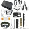Incluído: caneta tática*1, lanterna forte*1, bússola dourada*1, alça de mão*1, chave de fenda plana*1, chave de fenda Phillips*1, fivela para garrafa de água*1, arame*1, colher multifuncional*1, corda de paraquedas 3 metros, pederneira*1, apito*1, cartão multifuncional*1, mosquetão*2, manta de sobrevivência*1, caixa de ferramentas