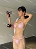 Biquíni feminino europeu e americano dividido com laço de cor sólida, biquíni sexy de verão