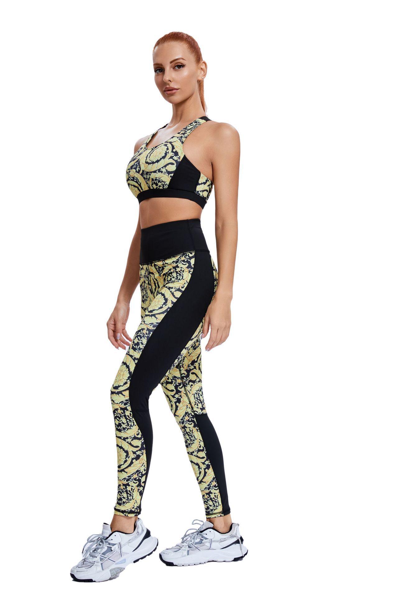 Conjunto de Roupa de Yoga Charme Nu Europeu e Americano Reunião Lulu Sutiã de Yoga Cintura Alta Calça de Yoga Anti-enrolamento Feminina